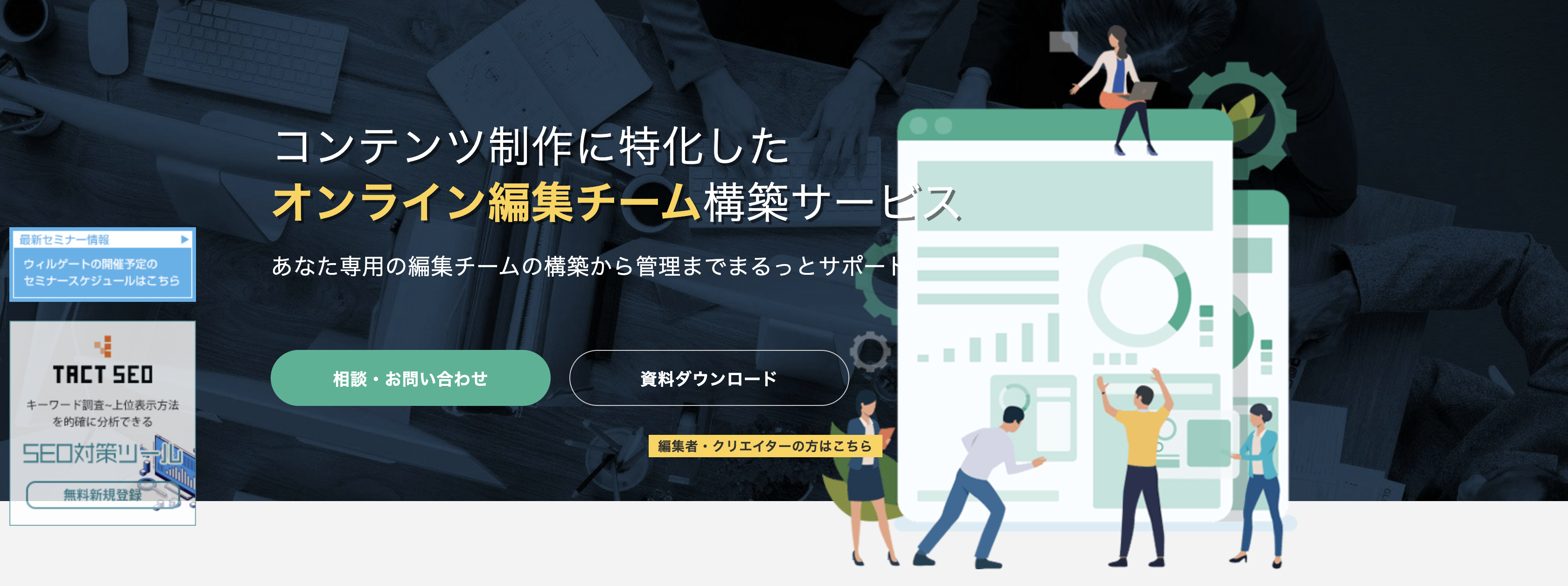 延べ7,000社のコンテンツマーケティングをご支援してきたウィルゲートが、「コンテンツ制作をより高品質に柔軟に、かつリーズナブルに提供したい」という想いで、2019年3月にリリースいたしました。