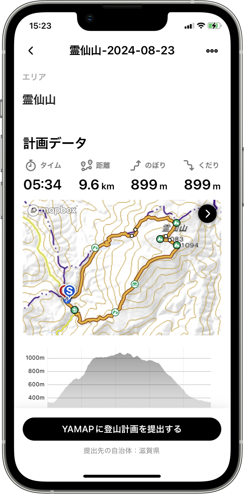 アプリで作成した登山計画書をそのまま滋賀県警察に提出