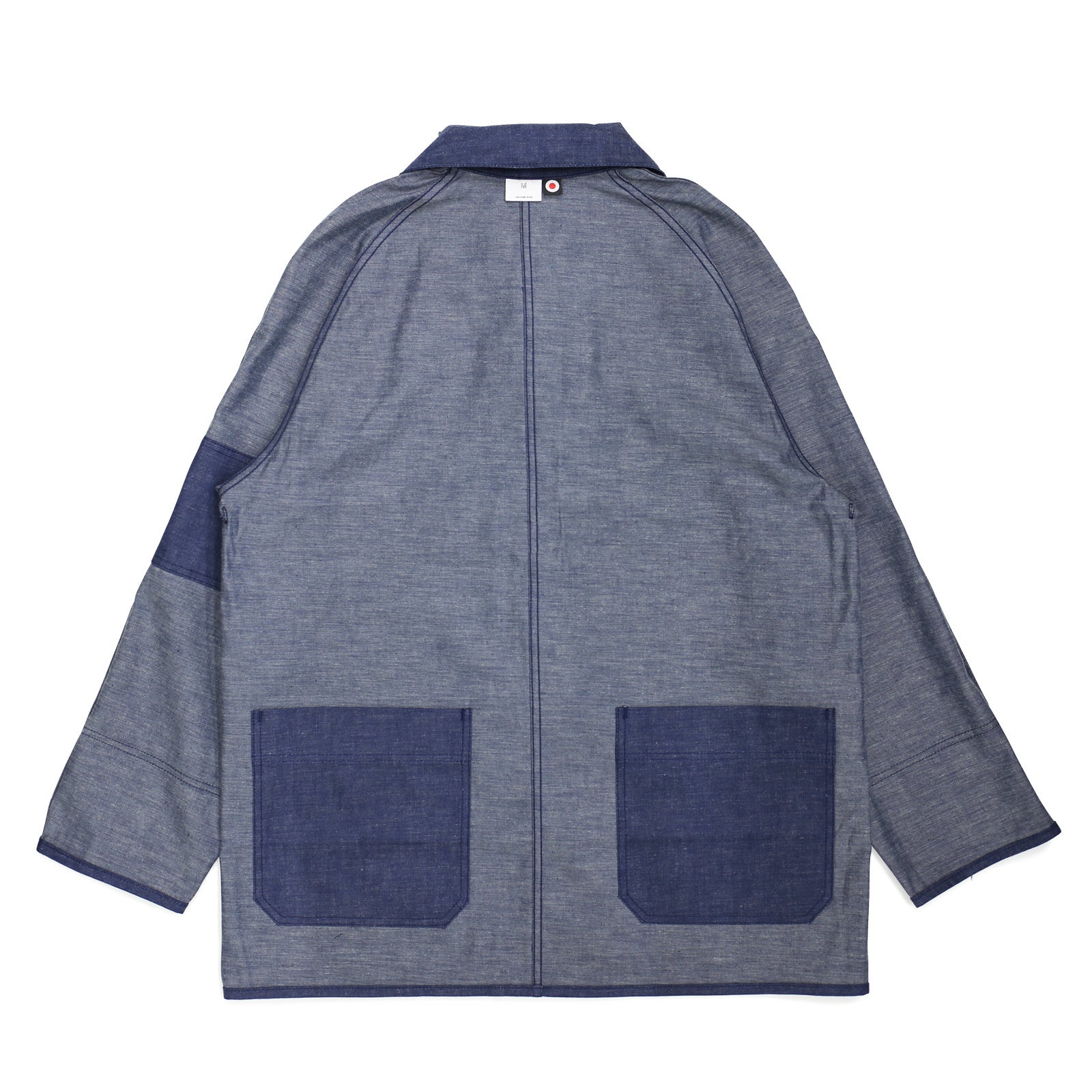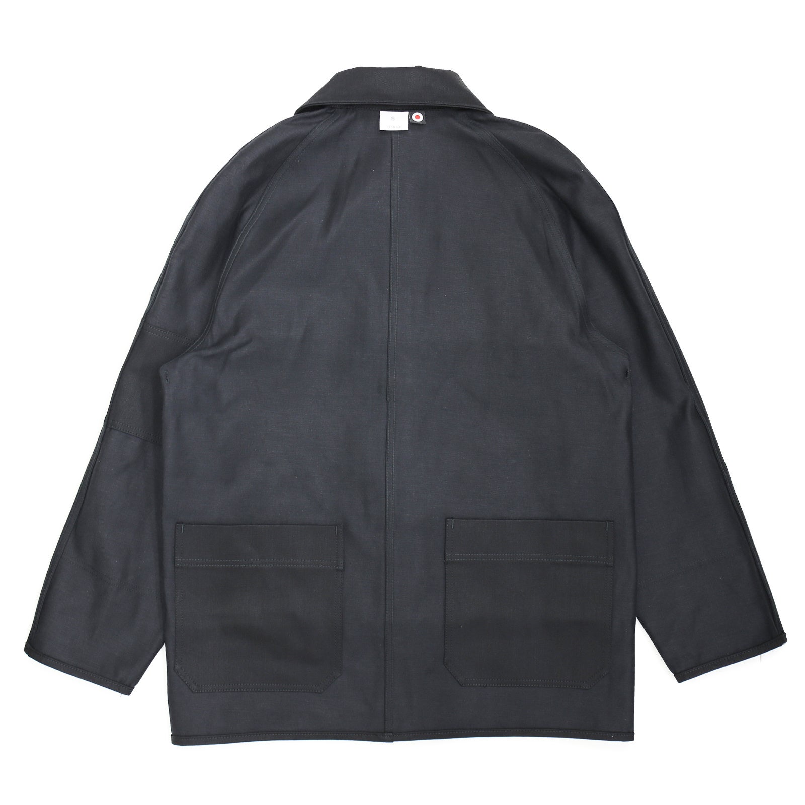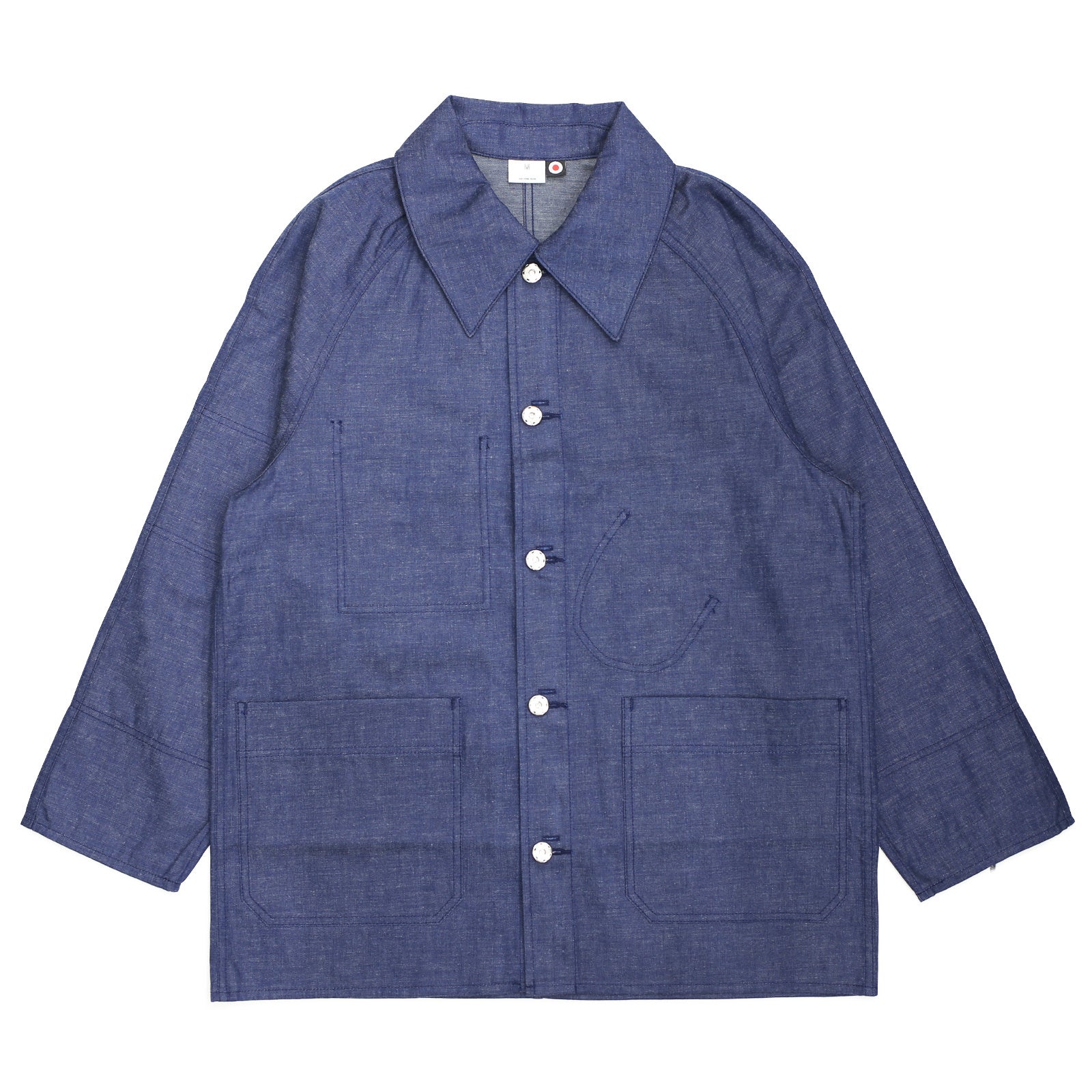 象徴として、尖ったバリモアカラーが特徴。逆が表のリバーシブル仕様に仕立て、フリップするとレイルロードJKT。懐中時計用のラウンドポケットや、腕章のディテールが現れます。ボタンは、どちらを表に着てもストレスの無いように、取り外し式のとってもいいボタン。飾りの二重カンは、外してアクセサリーにも転化する。形状はカルフォルニア・ゴールドラッシュ初期のカバーオールをイメージしながら、フランス鉄道や、国鉄ナッパ服のレイルロードJKTのディテールを細部に落とし込んだ各国の労働着が混在するデザインとなっています。