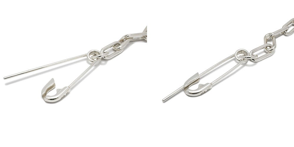 安全ピンは安全なのか? 安全を冠にしながら逆のイメージが先行する安全ピンの矛盾を紐解くべく、正しく正そうと反逆を正逆にしました。安全じゃない危険ピンのブレスレットとピアス。