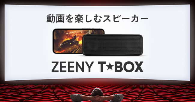 「Zeeny T★Box」は独自の音場拡張技術を搭載したBluetoothスピーカーです。のTはTheaterを表現しています。★は映画コンテンツの楽しさを表現しています。コロナ禍で映画館に行く楽しみが制限される中、動画配信をさらに楽しむことができるコンパクトな筐体のBluetoothスピーカーです。Zeeny T★Boxが、映画館の臨場感をあなたの部屋にお届けします。