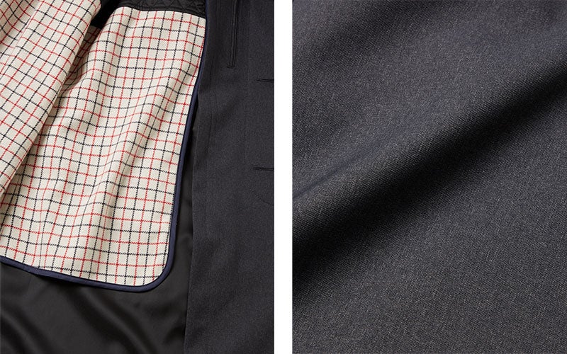 高機能中綿を採用するキルティングライナーは、タッタソール柄のウール生地とのコンビ使いに。天然の風合いを再現した表生地もしかり、アメリカンクラシックの継承者にふさわしい、上質さへの矜持が伺えます。