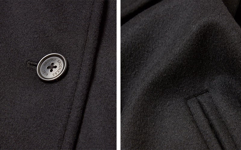 ウールを使いヘリンボーン織りにした生地は、ハリがありながらもしなやかにカラダへ沿ってくれます。ダブルの前合わせ、フラップ付きの大型パッチポケット、水牛の角を使用したボタンなどと共に、ブルックス ブラザーズが1910年代に米国へ紹介した当時の面影を残します。その完成された形は、いまや女性用のコートとしても定着しています。
