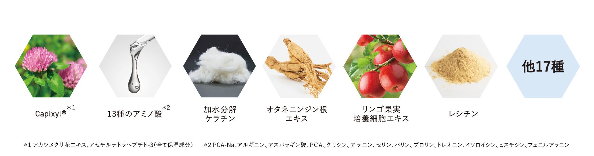 *1 毛周期に着目した成分(オタネニンジン根エキス、リンゴ果実培養細胞エキス、レシチン(全て保湿成分))をブレンドした処方