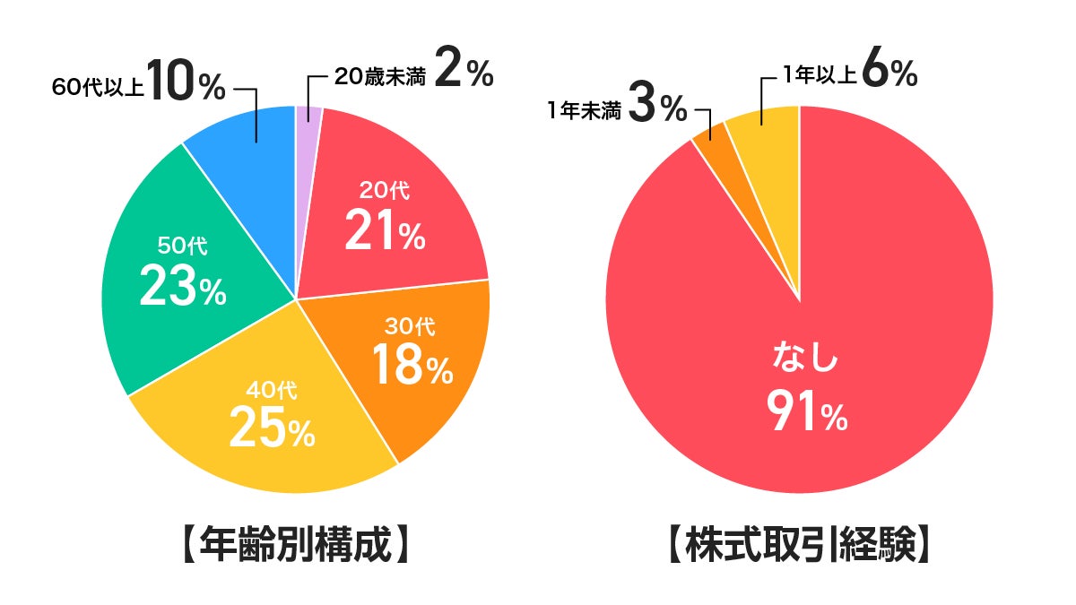 PayPay証券のNISA口座開設ユーザーは、株式取引未経験者の割合が91%、年齢別構成については20代から50代の現役世代が約9割を占めています(2024年9月末時点)。若い世代の方だけではなく、幅広い年齢層の資産運用初心者に支持されています。資産運用未経験者・初心者の方でも簡単、迷わずに直感的な操作で簡単に売買をすることができ、NISAデビューに適した厳選した銘柄ラインナップを提供しています。
