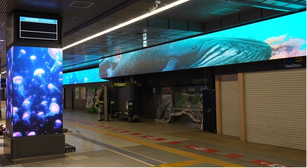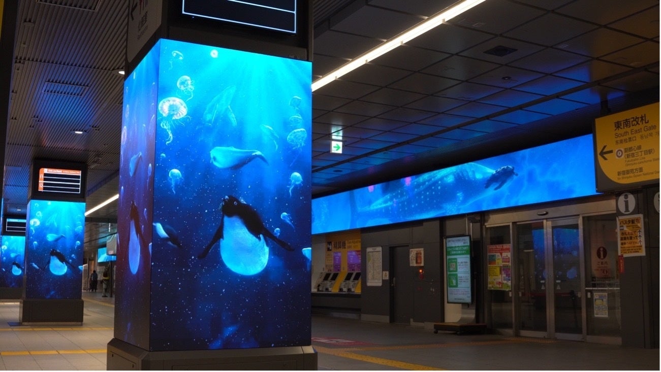 株式会社ワントゥーテン(本社:京都府京都市、代表:澤邊芳明)は、2024年4月15日(月)に株式会社ジェイアール東日本企画(本社:東京都渋谷区、代表取締役社長:赤石 良治)が新宿駅南改札内コンコースに開業した、イマーシブなメディア空間「新宿BBB(スリービー)」の空間演出及び、総面積約250平方メートルの3つの特徴的な大型サイネージに投影される映像「BEYOND AQUA」の制作を行いました。