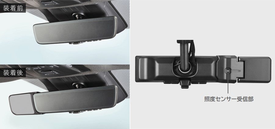 ミラーは眩しさを抑えるダーククローム鏡を採用。光の反射を50%カットし、夜間のヘッドライトや朝日、夕日の眩しさを抑えます。純正の電子ミラーとも色調が近く、相性の良いカラーです。