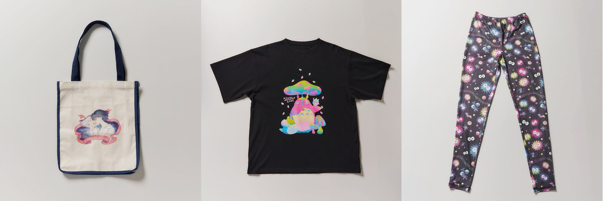日本オリジナルアイテムは、ゆうたろう(俳優・モデル)、新しい学校のリーダーズ(アーティスト)をはじめ、新鋭イラストレーターのABEchan、asuka、ナガミネショウコ、NANCYSNAKE、BEY、meeco、そしてKAWAIIカルチャーを世界に発信するKAWAII MONSTER CAFEが商品をプロデュース。今回のためにイラストレーターたちがジブリ作品のキャラクターを描き下ろしたアートや、クリエイターがジブリ作品の中で特に印象的だったシーンのデザインを取り入れたアイテムを制作しました。商品ラインナップは、定番のTシャツやスウェットはもちろん、デニムジャケット、スカジャン、ワンピース、シャツ、レギンスなど、50型以上を展開。バッグ、ポーチ、ステッカーなどの小物も多数取り揃えています。