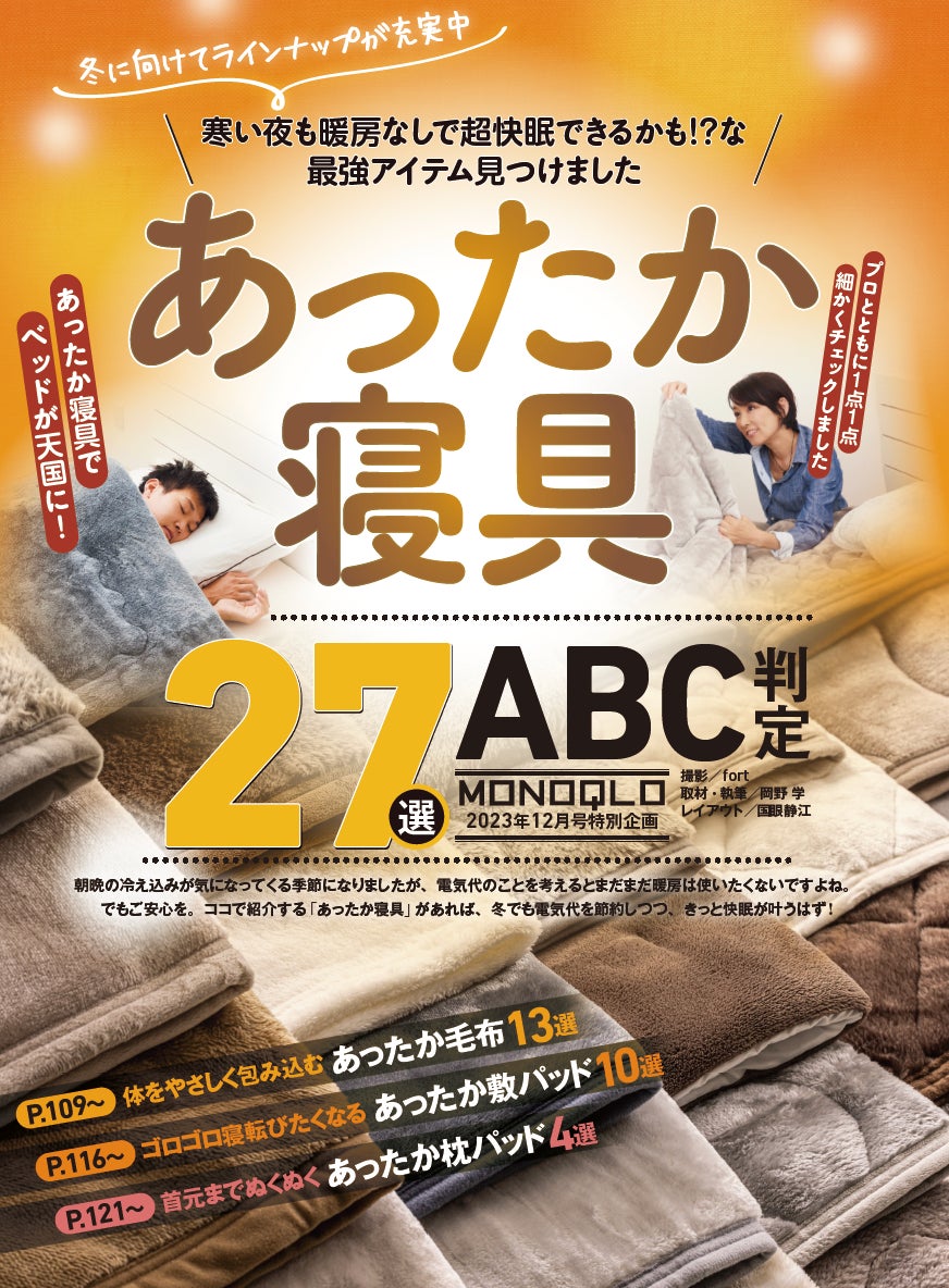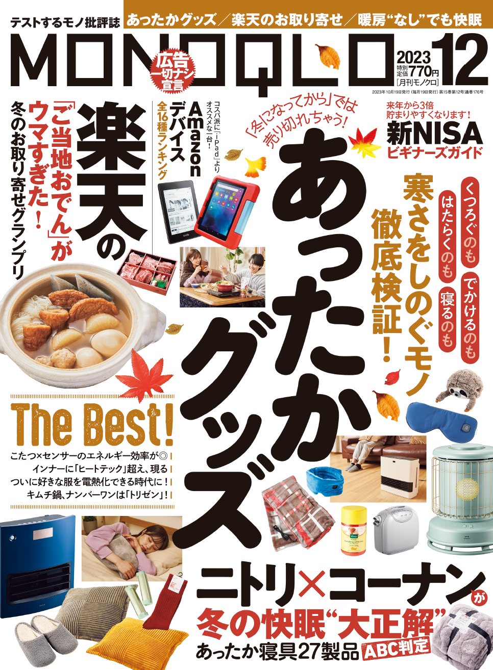 冬の寒さをしのいで節電も叶う! 日用品からガジェットまで“あったかグッズ”を大特集!!【MONOQLO 2023年12月号】