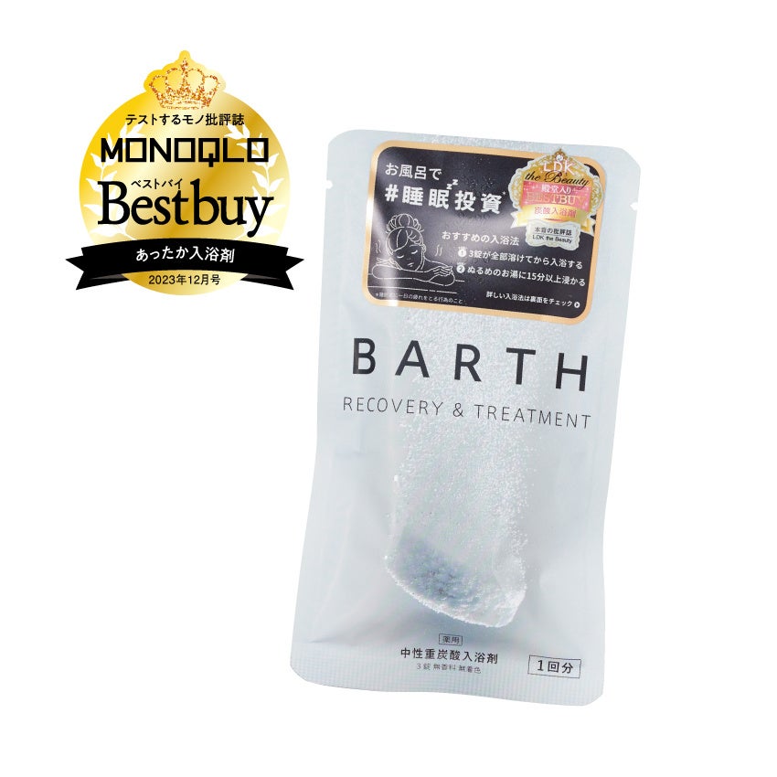 お湯に入れるとこまかな泡が溶け込んでいく炭酸系の入浴剤。重炭酸イオンがお湯を中性にすることで、温浴効果を促進するそう。実際に浸かっている間のあたたかさは他製品と大きな差があるわけではありませんが、違いが出たのは入浴してから15分後。脱衣所でもからだの内側があたたまっている感覚があり、全身ほかほか。30分以上その感覚が続いたため、就寝前に入れば気持ちよく眠れそう。サーモカメラを使ったテストでは、15分後もあたたかさが持続していました。汗をガッツリかきたいというよりも、やさしく体をあたためたい人向けです。