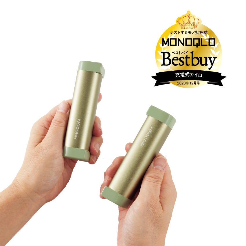 充電して繰り返し使えるカイロ。2個セットなので、左右のポケットに1つずつ入れたり、2人でわけたりといった使い方ができます。40℃のほんわかレベルから、熱々の55℃まで、3段階で温度調節可能。アウトドアでも活躍しそうです。