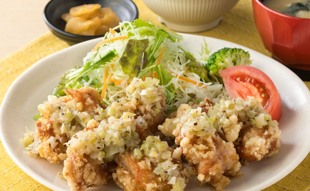 「カリっとジューシー」大戸屋の美味しい唐揚げをシャキシャキ食感のねぎ塩だれでさっぱりとお召し上がりください。