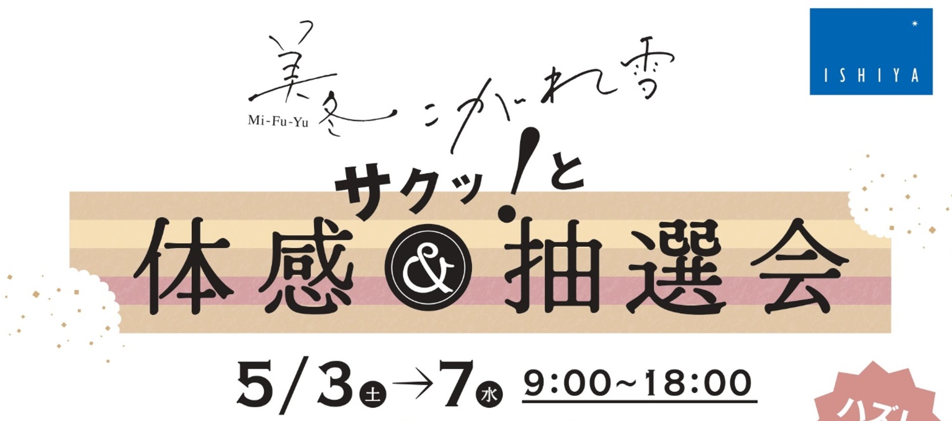 ゴールデンウイークの一部期間中、新千歳空港内にて本商品の魅力を体験いただけるイベントを開催いたします。「美冬 こがれ雪」のサンプリングのほか、特別な試食体験を楽しむことができるASMRブースや、はずれなしの抽選会を実施いたします。