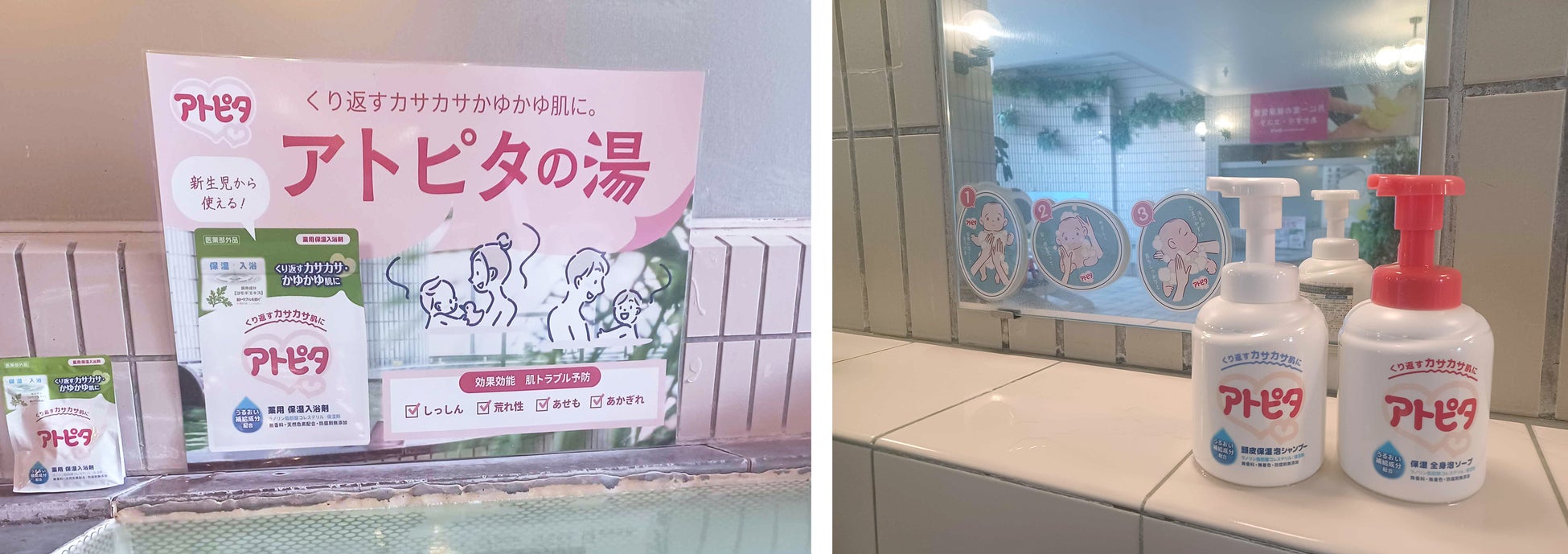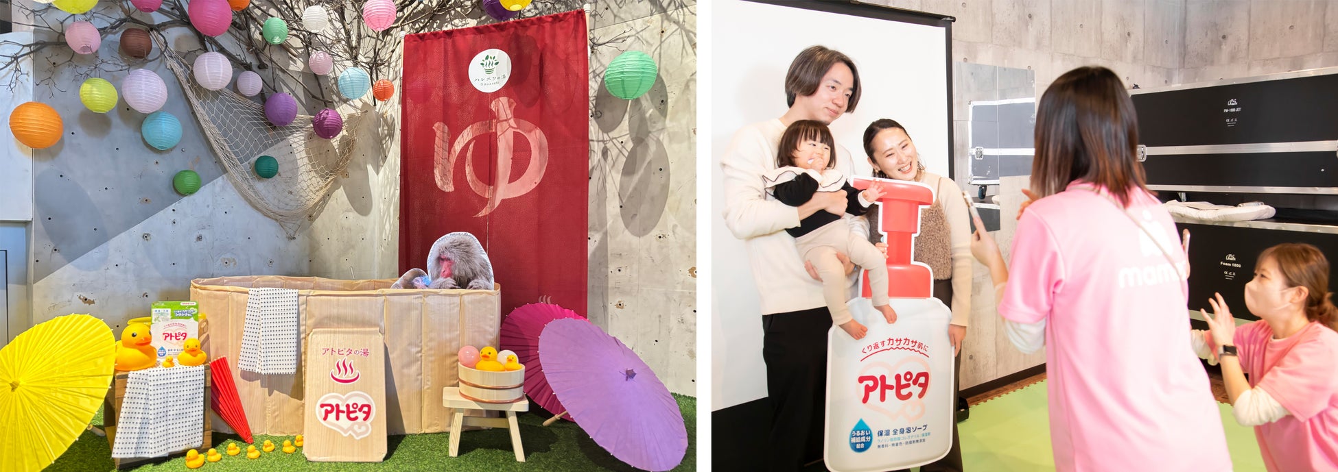 イベント期間中は、特に0歳から2歳くらいの小さなお子様連れのファミリーが多数来館しました。特に「アトピタの湯」は赤ちゃんや小さなお子さまを持つご家庭から「子どものお肌がしっとり保湿されました!」などの声があり、ご好評をいただきました。フォトスポットでは可愛らしいお写真もたくさん撮影され、オンライン上でもイベントの話題が広がりました。