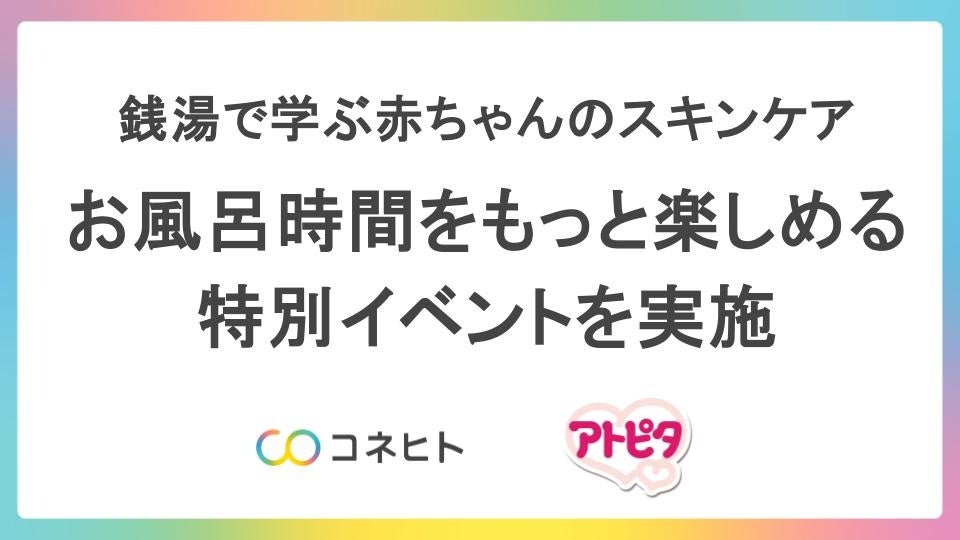 コネヒト株式会社(本社:東京都港区、代表取締役 杉井 信一郎、以下「コネヒト」)は、「アトピタ」を展開する丹平製薬株式会社(本社:大阪府茨木市、代表取締役社長 森 宏之)とともに、家族向けスキンケアイベント『アトピタの湯』をハレニワの湯(埼玉県熊谷市)にて開催いたしました。