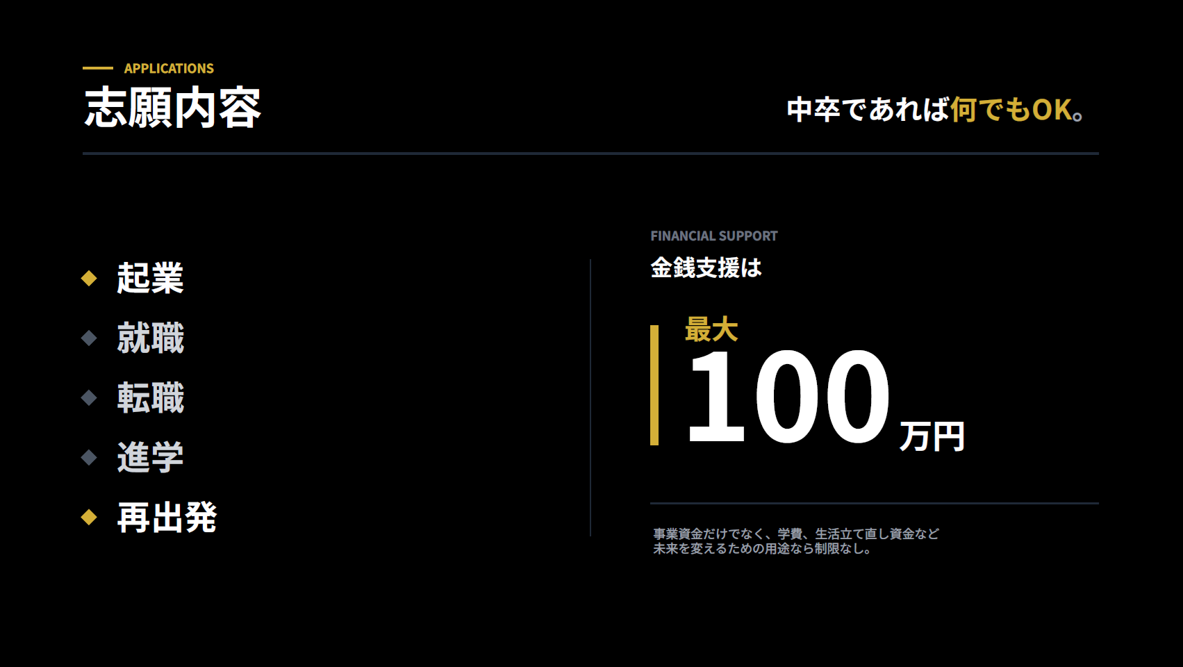 ■ 志願条件は「中卒」のみ。最大100万円の未来投資