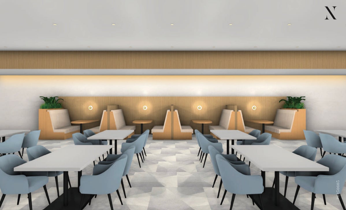 お客様にゆったりとお過ごしいただけるよう、空港のラウンジのような落ち着いた雰囲気を持たせ、高級感のあるデザインに仕上げています。カフェは様々な種類のお飲み物をご用意しており、商談スペースやラウンジスペースへ自由にお持ち込みいただけます。