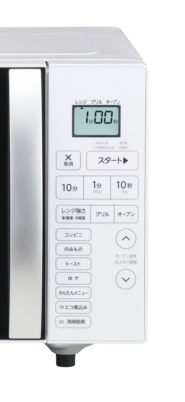 この度発売する、16Lオーブンレンジは自炊に役立つ20種類※1のオートメニューを搭載し、簡単操作で手軽にもう一品が作れる「かんたんメニュー」や、おいしく節約もできる「エコ煮込みメニュー」など、忙しい毎日の食生活をサポートするオーブンレンジです。幅46cmのコンパクト設計でひとり暮らしのワンルームのお部屋や、ふたり暮らしの限られたキッチンスペースにも設置しやすいサイズを実現しました。