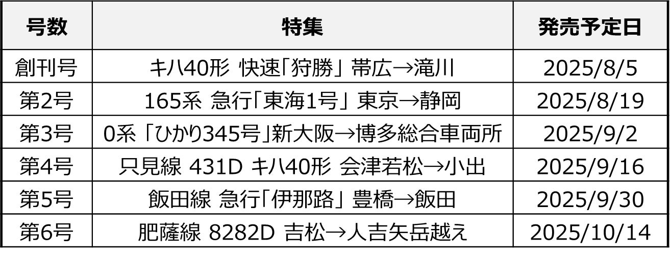 株式会社デアゴスティーニ・ジャパンは、鉄道の歴史と魅力が詰まった運転席からの前面展望ノーカット映像と、乗車路線を解説するマガジンをコレクションできるDVD付きマガジン、隔週刊『鉄道 前面展望 DVDコレクション』を、2025年8月5日(火)より全国書店(一部地域を除く)及び、当社ホームページで発売します。