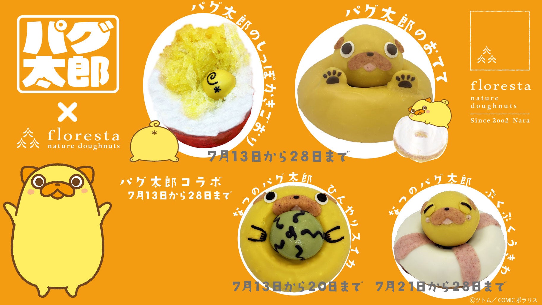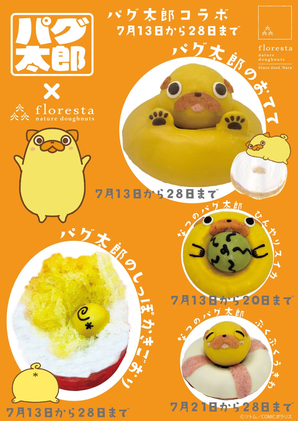フロレスタのコラボドーナツ★2024年7月13日から漫画「おじさんはカワイイものがお好き。」の小路課長の推しキャラ「パグ太郎」が登場!からだにやさしくおいしい自然派ドーナツ専門店フロレスタ