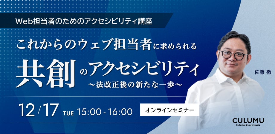 【〜アクセシビリティ講座〜開催のお知らせ】これからのウェブ担当者に求められる共創のアクセシビリティ〜法改正後の新たな一歩〜(12月17日(火)15時〜オンライン開催)