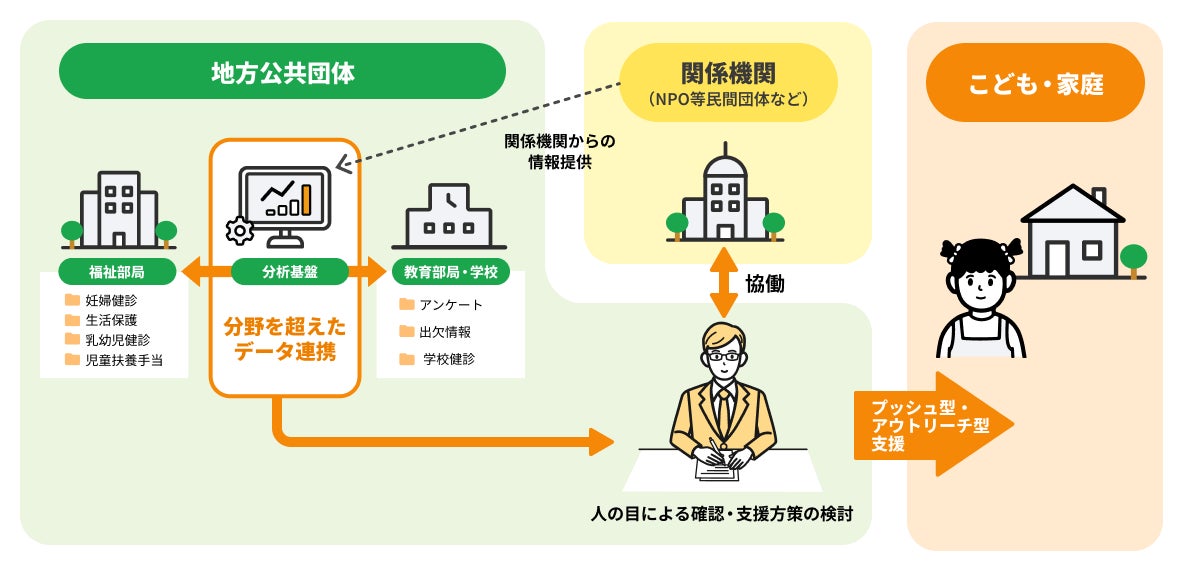 ・利用データの選定支援、こどもデータ連携の仕組み構築支援等を担います。