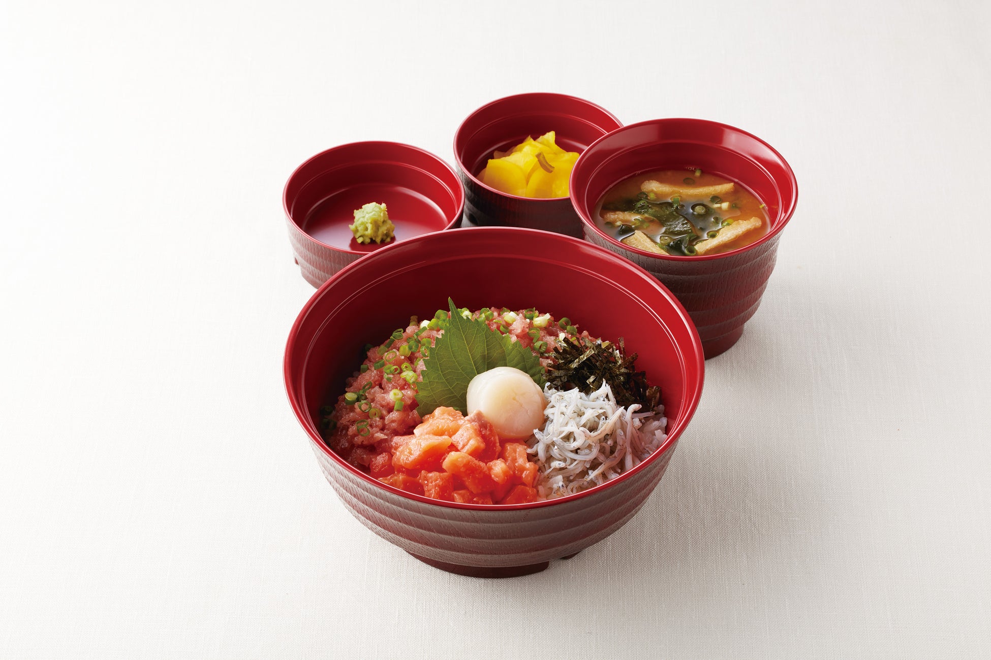 海鮮四種丼(北海道産ホタテ・日向灘沖獲れ釜揚げしらす・ねぎトロ・サーモン )