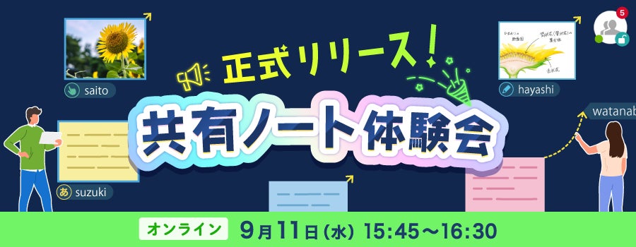 私たちLoiLoは、9月11日(水)に「共有ノート体験会」をオンライン開催いたします。授業支援クラウド「ロイロノート・スクール」で正式リリースとなった共同編集機能「共有ノート」を体験できるイベントです。参加費は無料です。ぜひご参加ください。
