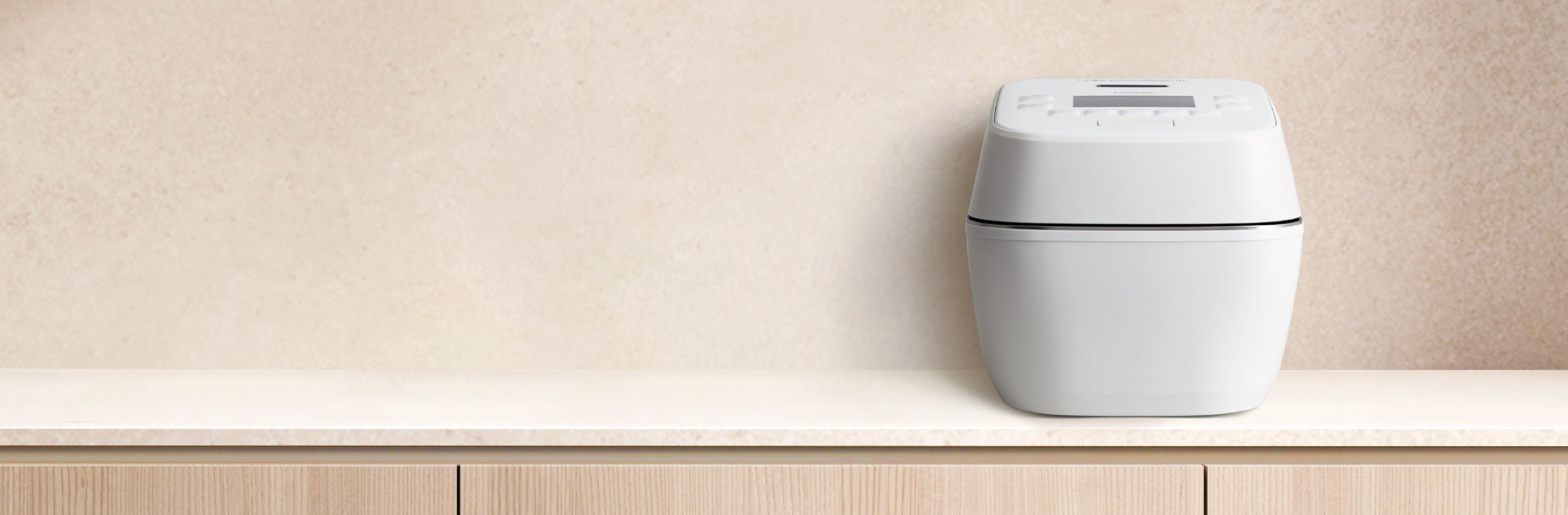 1955年に日本で初めて自動式電気釜を発売し、今年で70年目を迎える[※1]当社炊飯器は、独自[注1]の真空技術を活かした『真空水で炊く』という新しい発想で、おいしさはもちろんのこと、ハリ・ツヤによる見た目にまでこだわったごはんに炊き上げます。