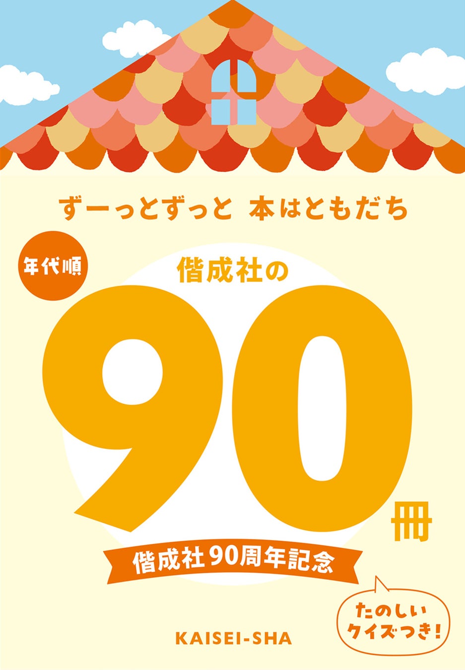 偕成社90周年。キャッチフレーズは「ずーっとずっと 本はともだち」