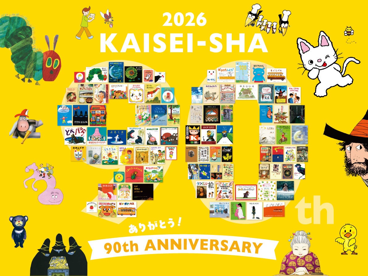 「ノンタン」シリーズ、『はらぺこあおむし』『からすのパンやさん』などを刊行する子どもの本の出版社、株式会社偕成社(出版社 本社:東京都新宿区 代表取締役社長:今村雄二)は、2026年11月3日に創業90周年をむかえます。90周年のキャッチフレーズは「ずーっとずっと 本はともだち」。読者のみなさまに感謝を届けられる一年となるよう、記念復刊や記念刊行、展覧会、書店店頭フェアなど、さまざまな企画を行います。