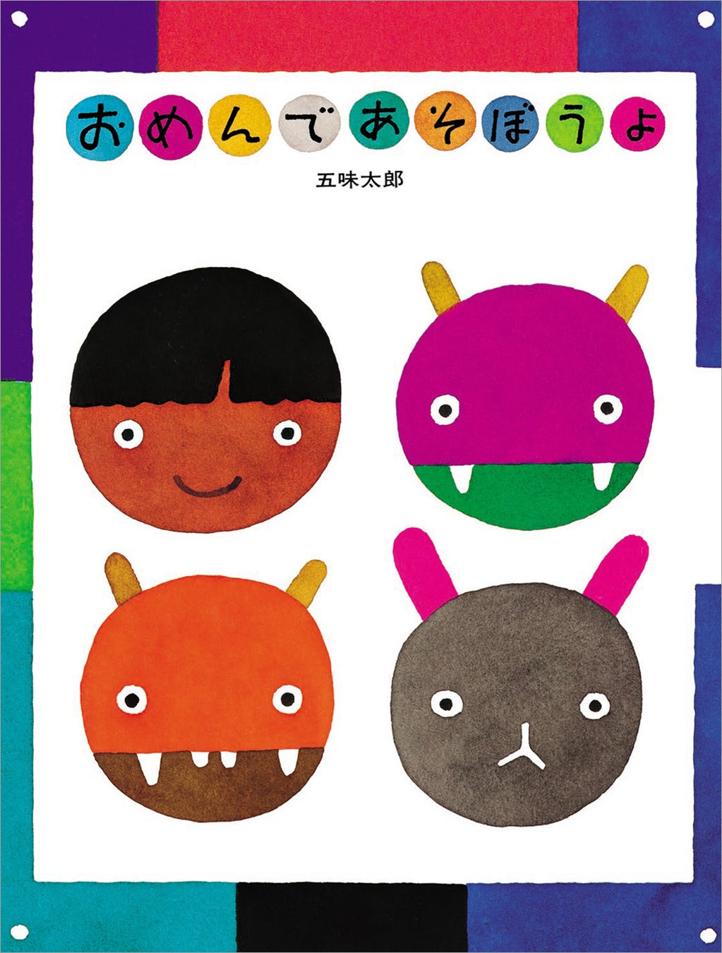 人の子と鬼の子がたのしく「おめんあそび」をしますが、やがて、人の子が鬼のお面をつけ、鬼の子が人のお面をつけ……読んでいるうちになにがほんとうかわからなくなってきます。読んだ後にぞくっとくる、五味太郎節全開の名作です。