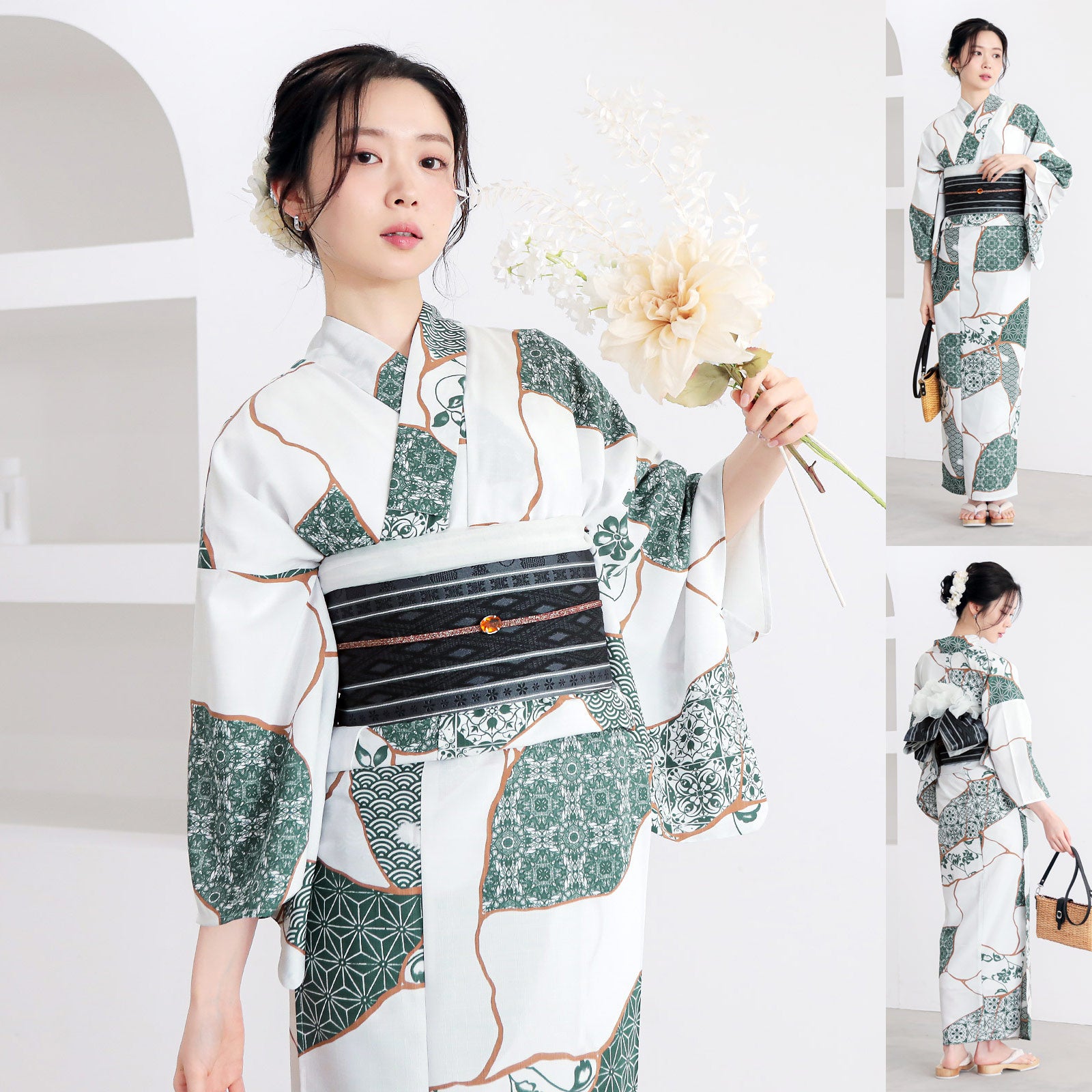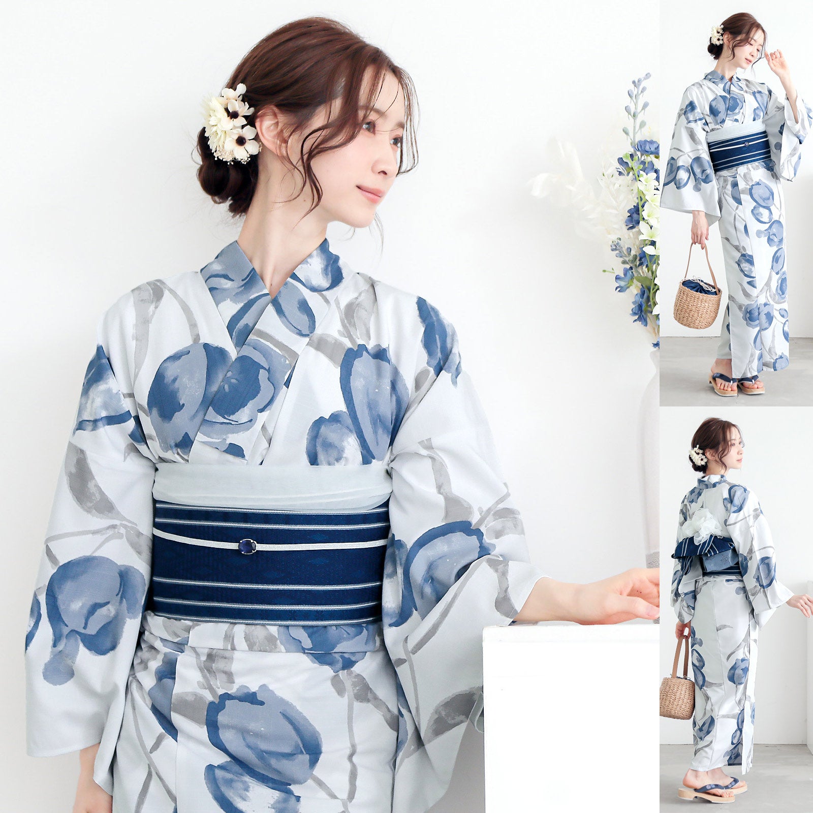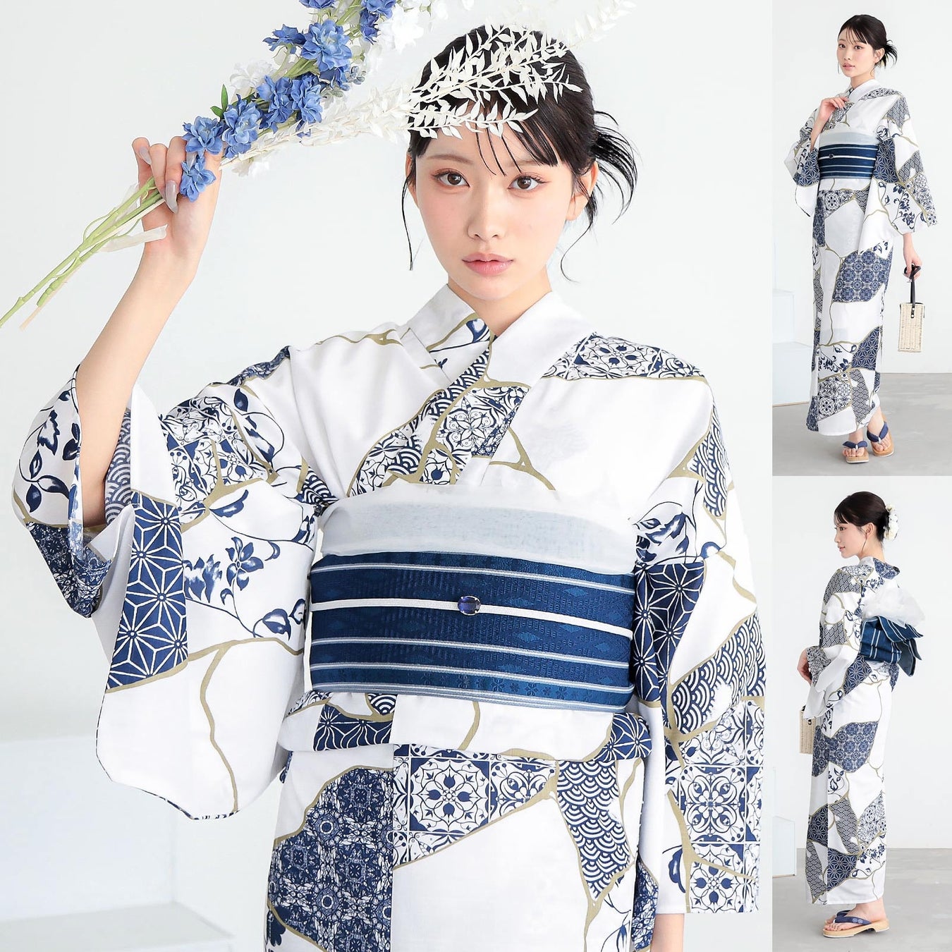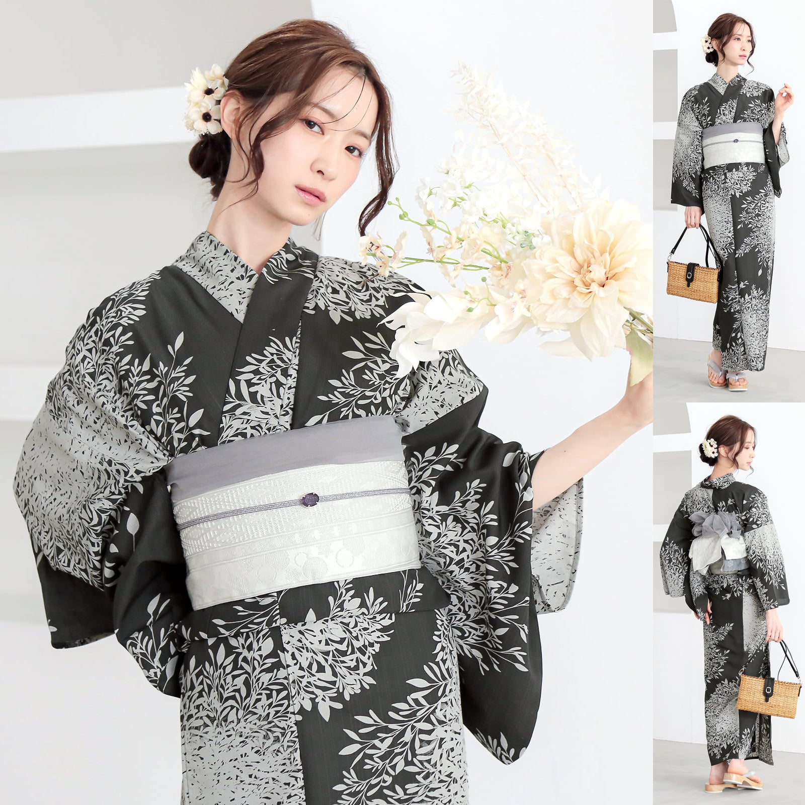 そんな着物初心者さんのために、KIMONOMACHIではデザイン担当スタッフ達が数あるアイテムの中からベストな組み合わせを厳選した「浴衣コーデセット」を提案しています。