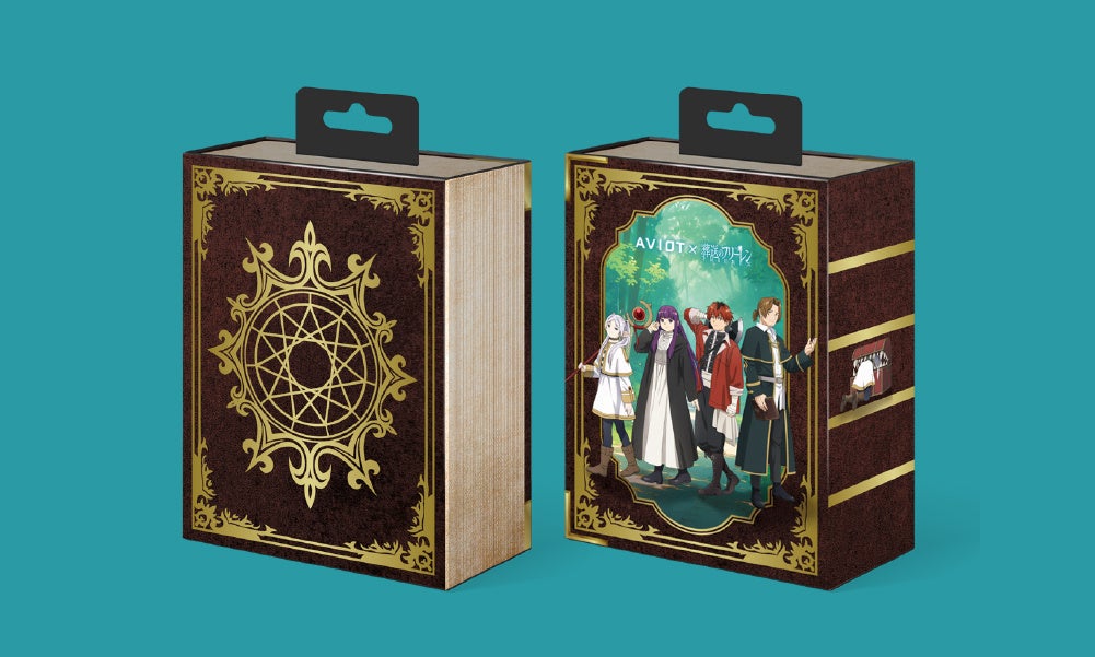 作中のキーアイテムでもある“魔導書”をモチーフとしたパッケージに、フリーレン一行のイラストを配置しました。