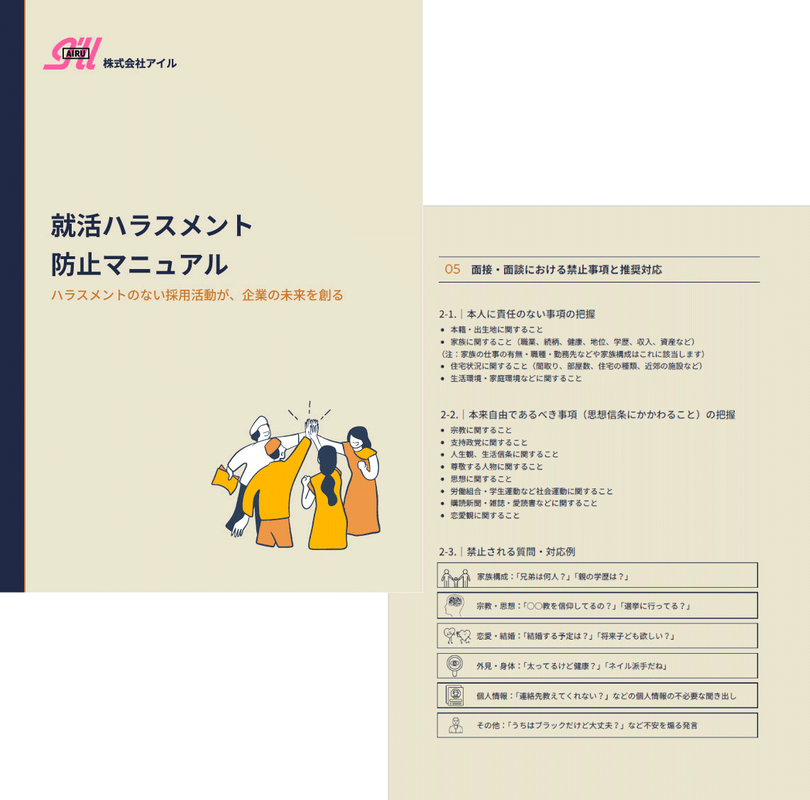 「就活ハラスメント」とは、採用活動の過程において、応募者の意に反する不適切な言動により、応募者に心理的・物理的な負担を与える行為を指します。