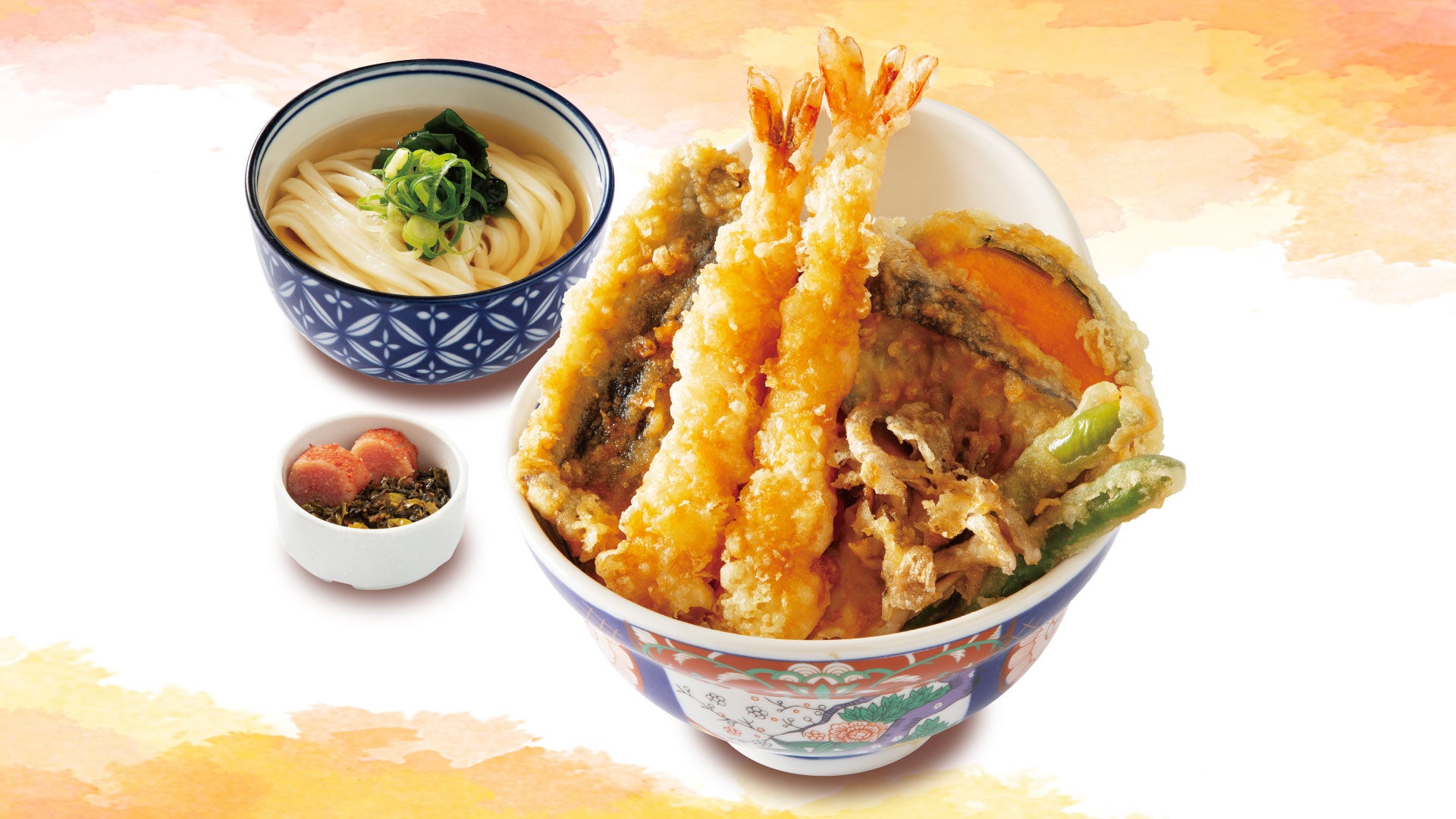 ■ 秋刀魚と秋野菜の天丼 ミニ麺セット(明太子とからし高菜が食べ放題付き)
