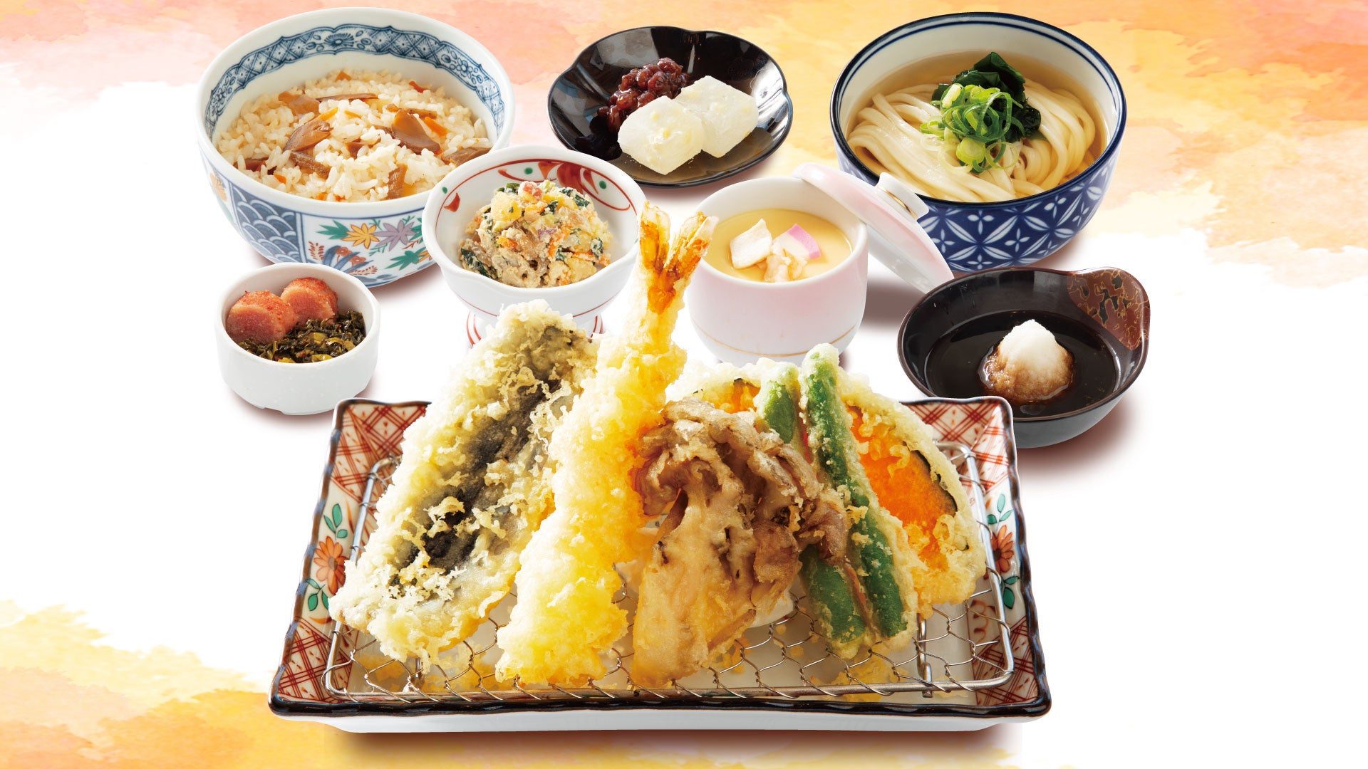 ■ 秋の天ぷら御膳(明太子とからし高菜が食べ放題付き)
