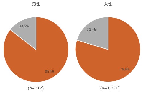 約9割(85.5%)、女性は約8割(79.6%)が「はい」と回答し、性別によって若干の差が出ることがわかりました。
