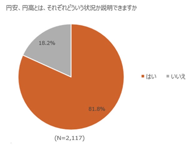 円安、円高の意味についての理解を尋ねた