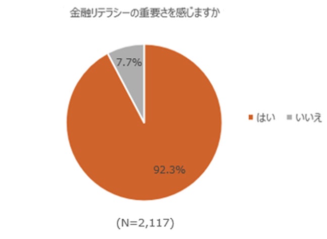 金融リテラシーの重要性さを感じるか尋ねたところ、重要さを感じると回答した学生は全体の約9割(92.3%)という結果となり、大多数の学生が金融リテラシーの重要さを感じていることがわかりました。