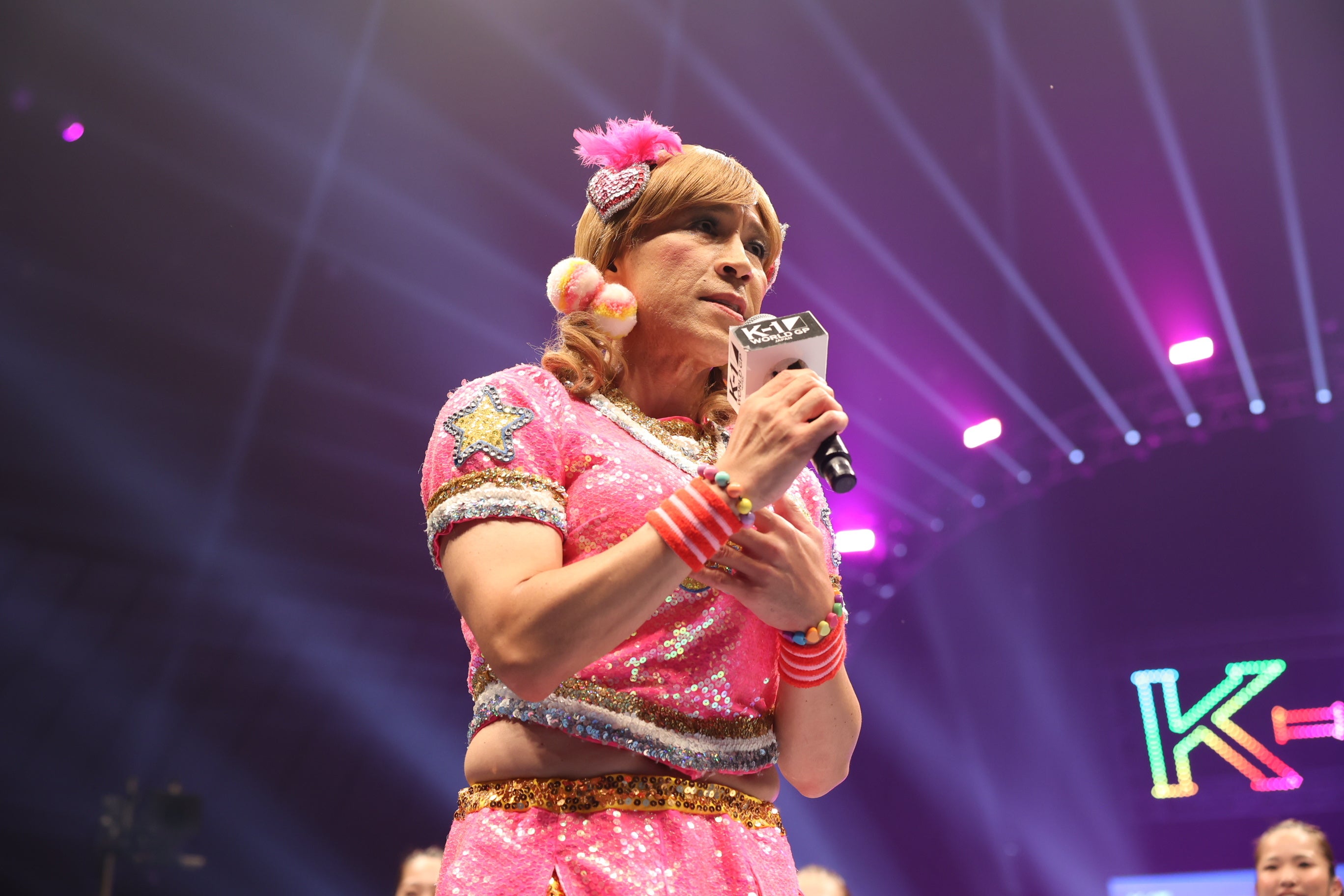 観客の手拍子とともに豪快なダンスで登場し、リング上でのスピーチでは「アメリカの総合格闘家マイティ・モーと戦うつもりで来ましたが、ダンスの依頼だったので精一杯踊りました。息切れで口が乾いて口 が臭くてたまりません。」と息を切らしながら話していました。