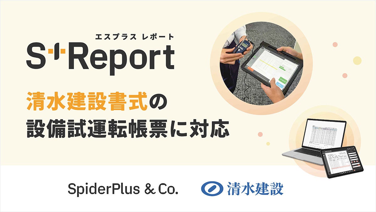 建設DXサービス「SPIDER+」を提供するスパイダープラス株式会社(以下、当社)は、当社のデジタル帳票機能をメインとした「S+Report」が、清水建設株式会社(以下、清水建設)の全面的な支援のもと、同社現場での試行を経て設備試運転帳票に標準対応し、本格的に導入されることをお知らせいたします。