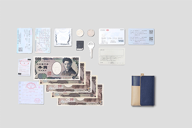 外出時に必要な最低限のお札、カード、小銭、鍵、その他小物等もまとめて効率よく収納可能。上記のもの全てを収納しても、厚さはわずか2cm。従来の財布の半分以下に収まり、荷物に嵩張る心配も無用です。