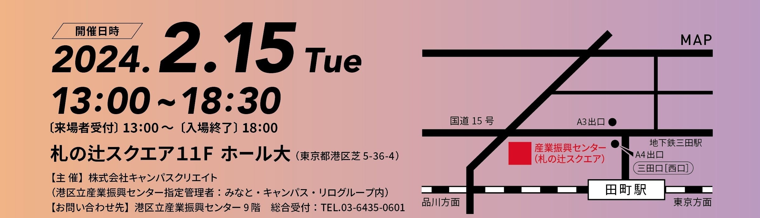 開催日:2024/2/15(木)13:00~18:30(入場受付13:00~ 入場終了18:00)