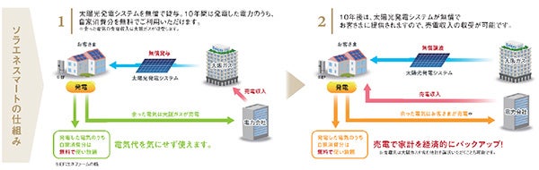 (2)太陽光発電を無償設置(当初10年間は大阪ガスから無償貸与。10年後はお客さまに無償譲渡)