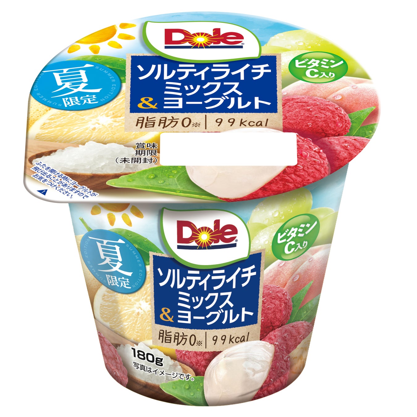 日々の朝食替わりやお食事後のデザートに、手軽においしくフルーツとヨーグルトが摂取できる夏限定の「Dole®ソルティライチミックス&ヨーグルト」をぜひお召し上がりください。