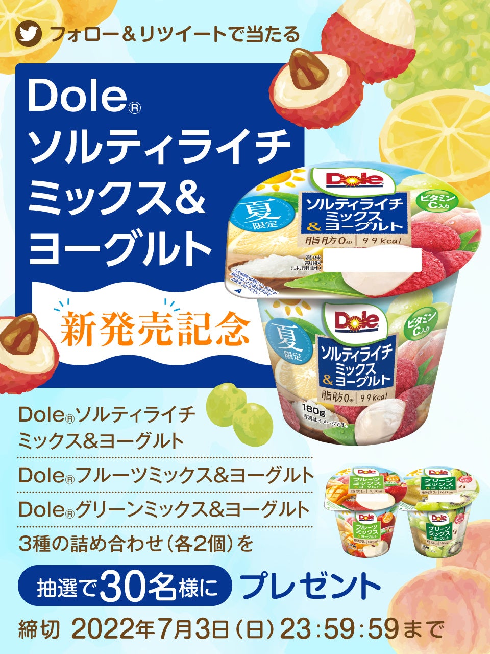 - 「Dole🄬ソルティライチミックス&ヨーグルト」新発売記念Twitterキャンペーン実施!