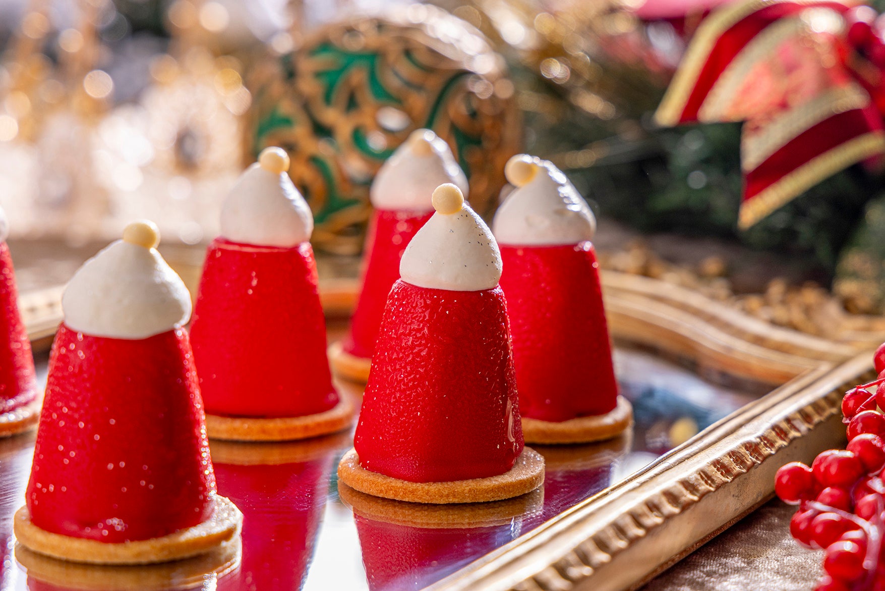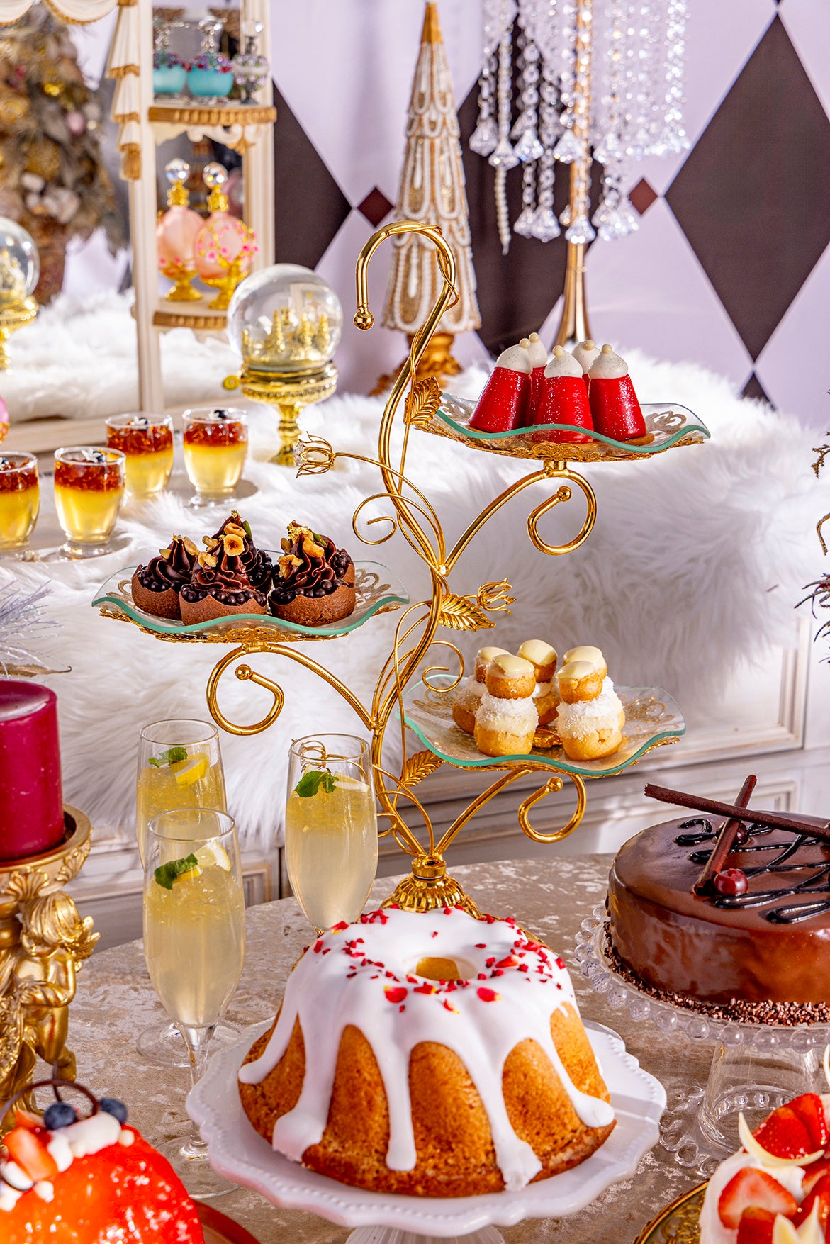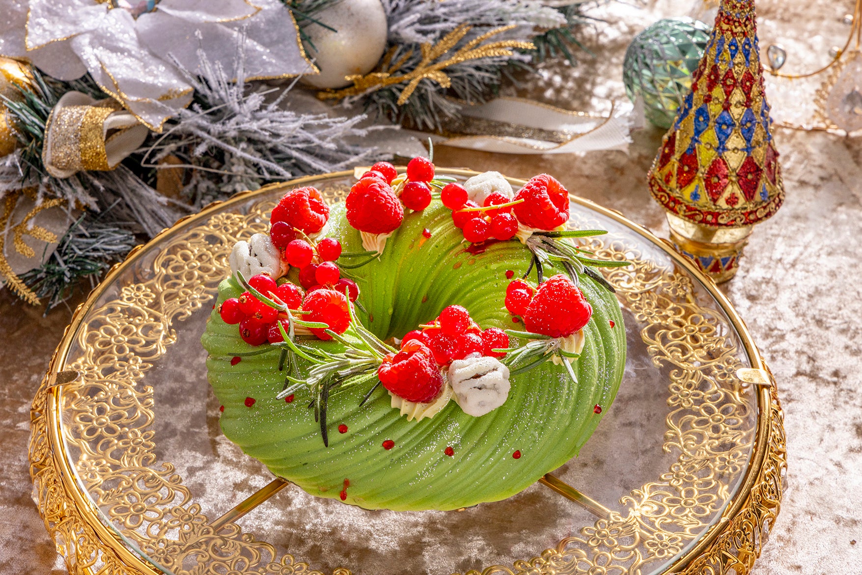 その他にもマルメロのクリームチーズケーキにグリーンアニス香るりんごがアクセントになった「ペール・ノエル」、シナモン、ジンジャーにエダムチーズを加えることでほのかな塩気も感じられる「ジンジャークッキー」、爽やかなレモンの風味とデザートワインジュレの組み合わせがエレガントな「眠気覚ましのレモンワインジュレ」など、優雅なロイヤルクリスマス気分を味わいながら、クリスマススイーツに囲まれる至福のひと時をお過ごしいただけます。