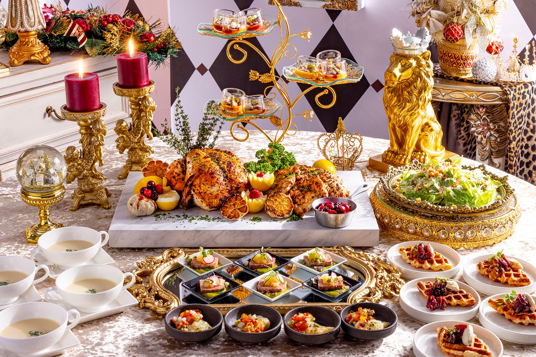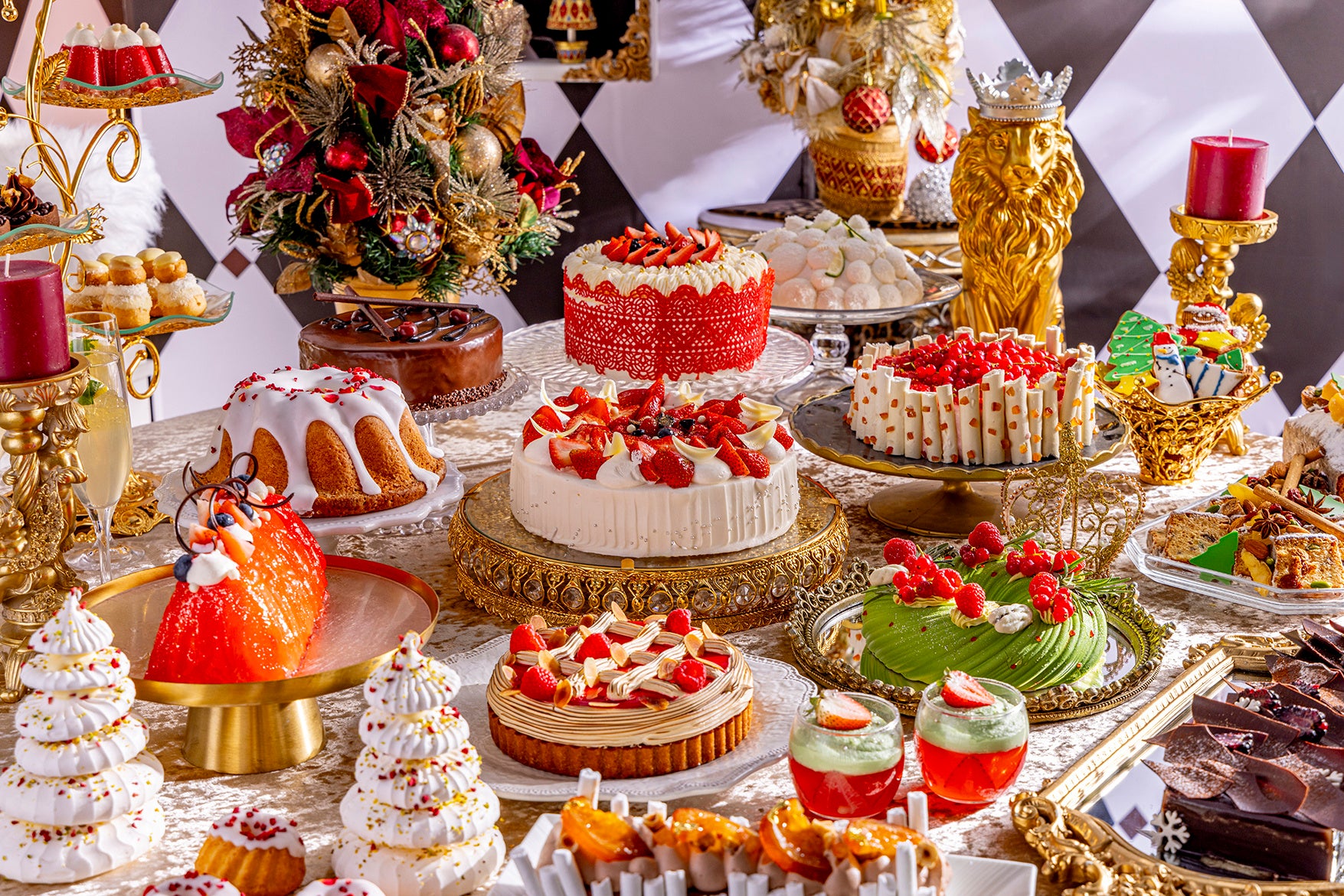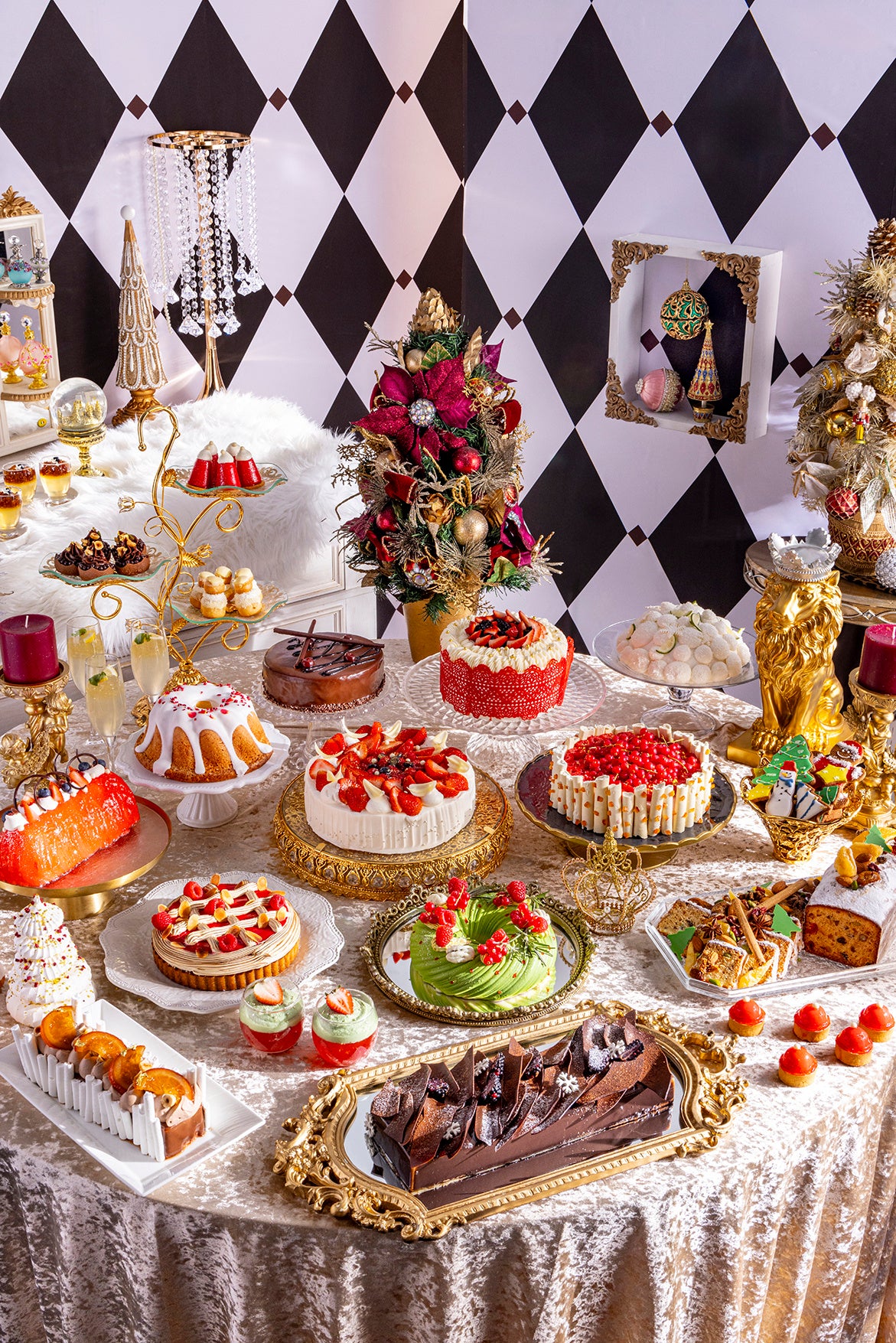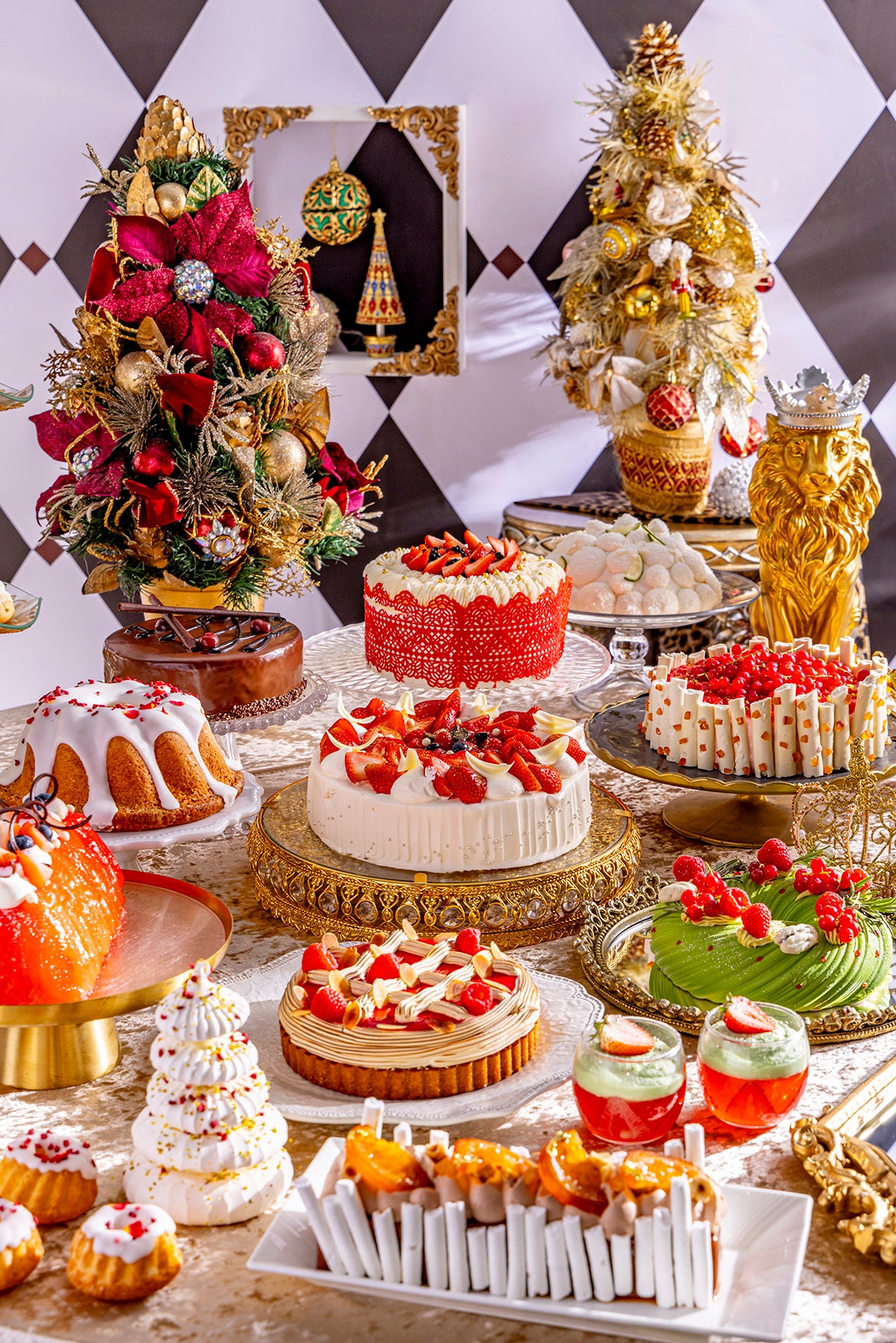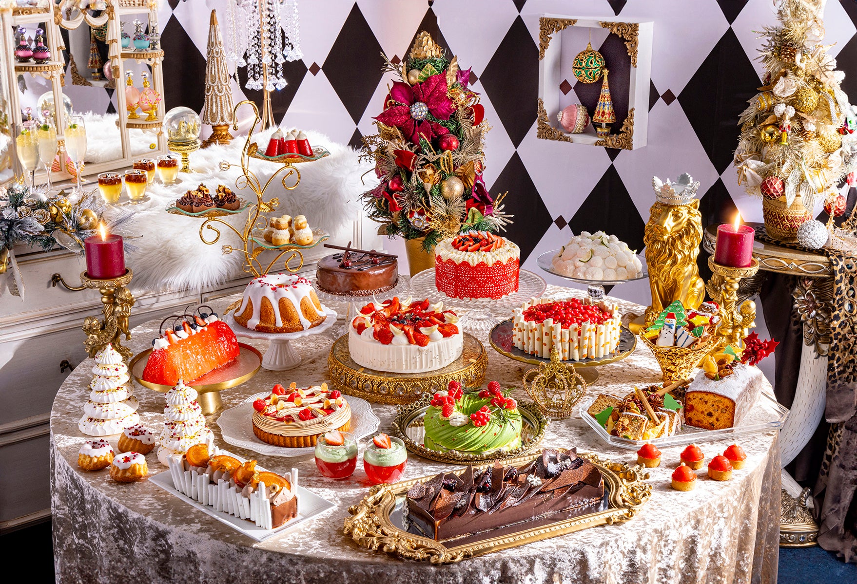 “ヴェルサイユのクリスマス”着想スイーツビュッフェ。20種類以上のクリスマススイーツとローストチキンなどのカービングが勢揃い