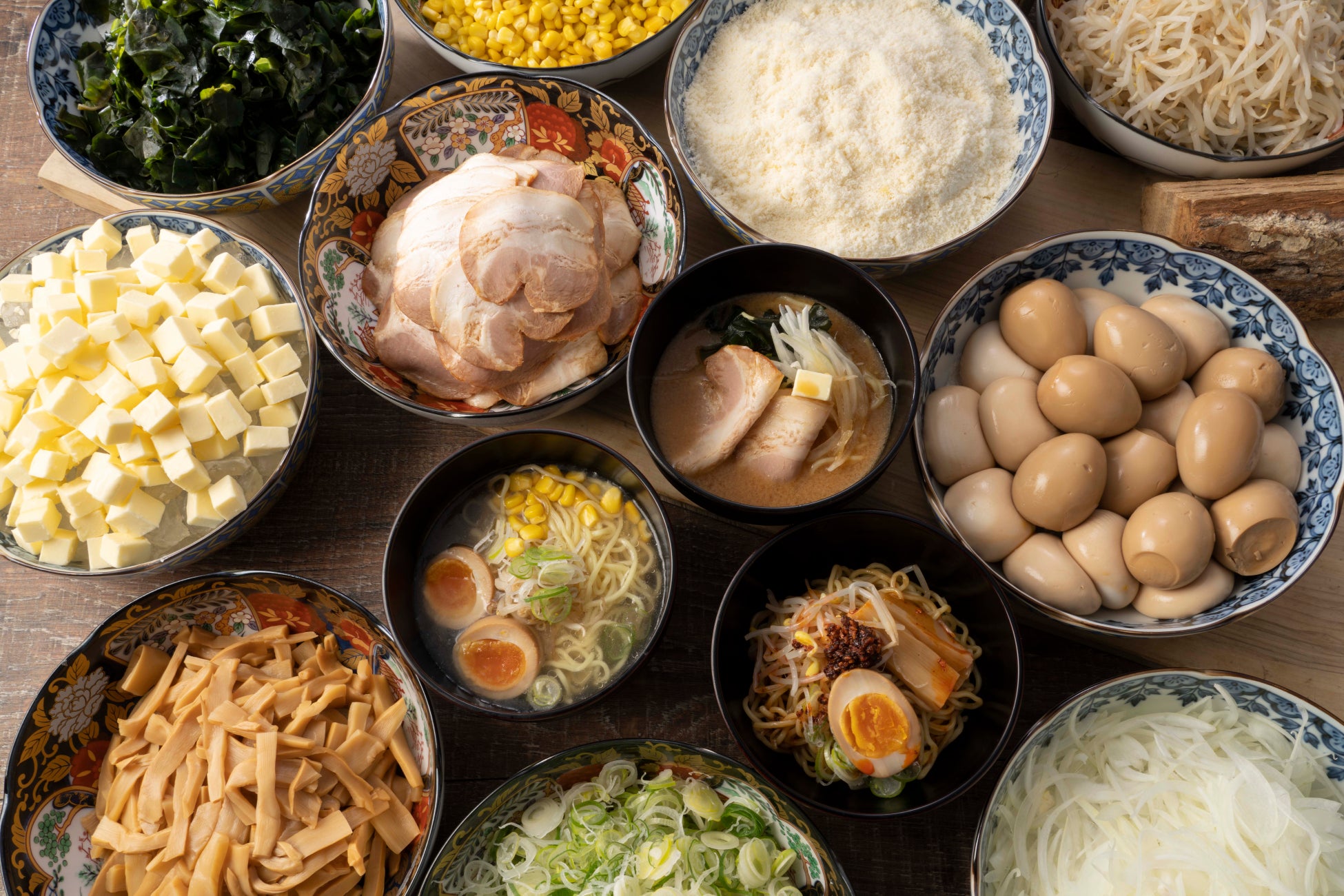 札幌の味噌、函館の塩、北海道産根昆布だしの3種のスープに加え、ちぢれ麺と中細ストレート麺の2種類をご用意。組み合わせ次第で、自分だけの一杯をお楽しみいただけます。さらに、メンマ、コーン、味付けもやし、バター、煮卵、チャーシュー、食べるラー油、チーズ、わかめ、玉葱の10種類のトッピングから選べるコーナーも設け、オリジナルの一杯を仕上げていただけます。北海道の各地域を代表する味を一度に楽しめる、贅沢な食べ比べ体験も魅力です。